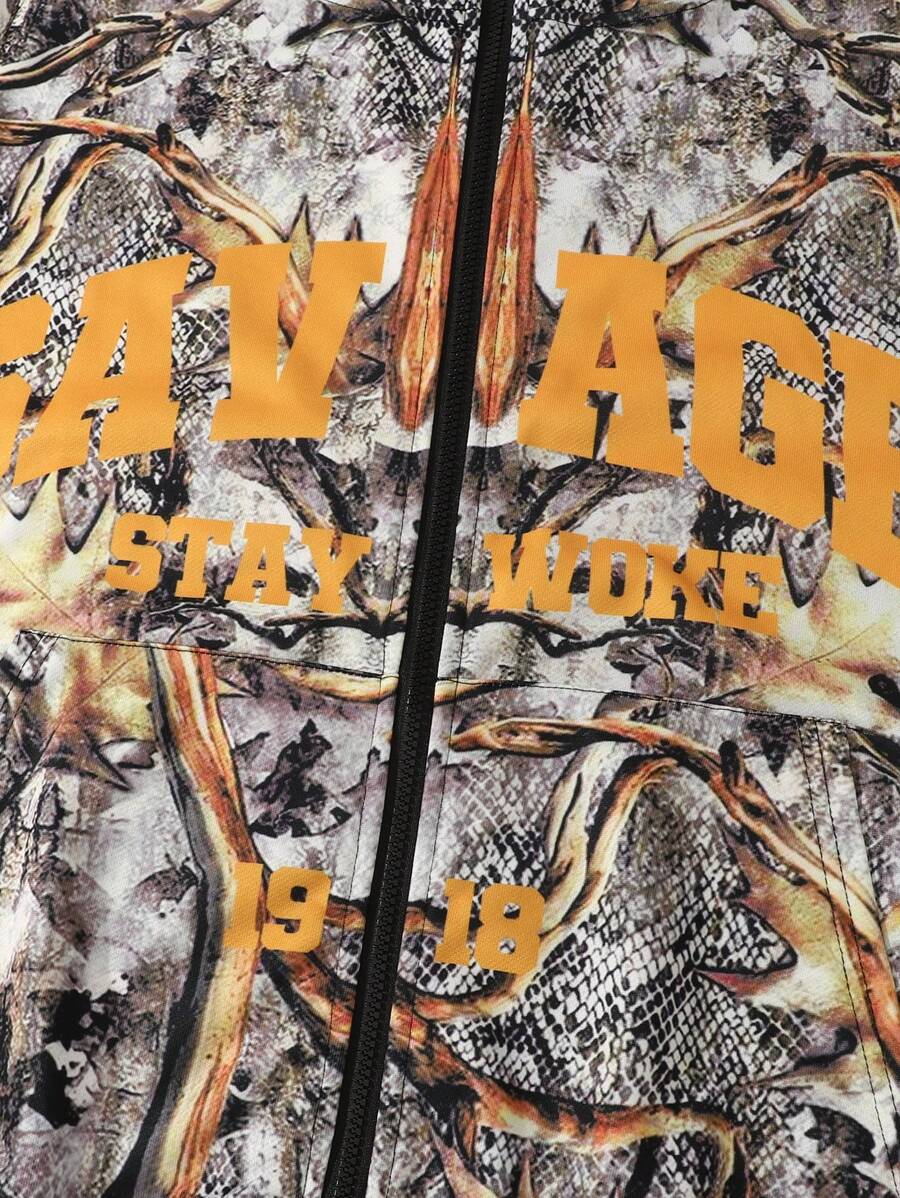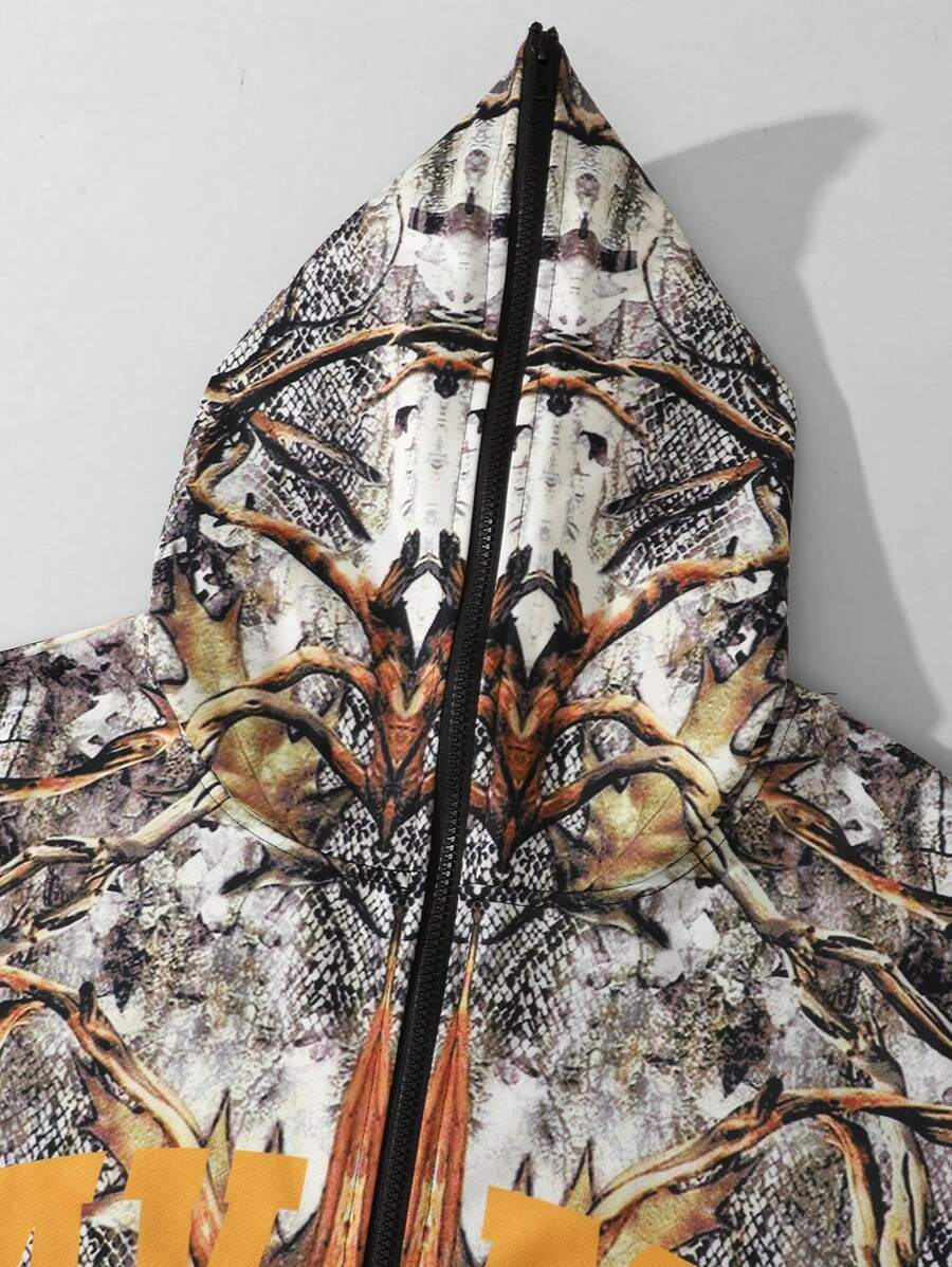 Street Life Men's Dry Wood Camouflage Print Zipper Hooded Sweatshirt