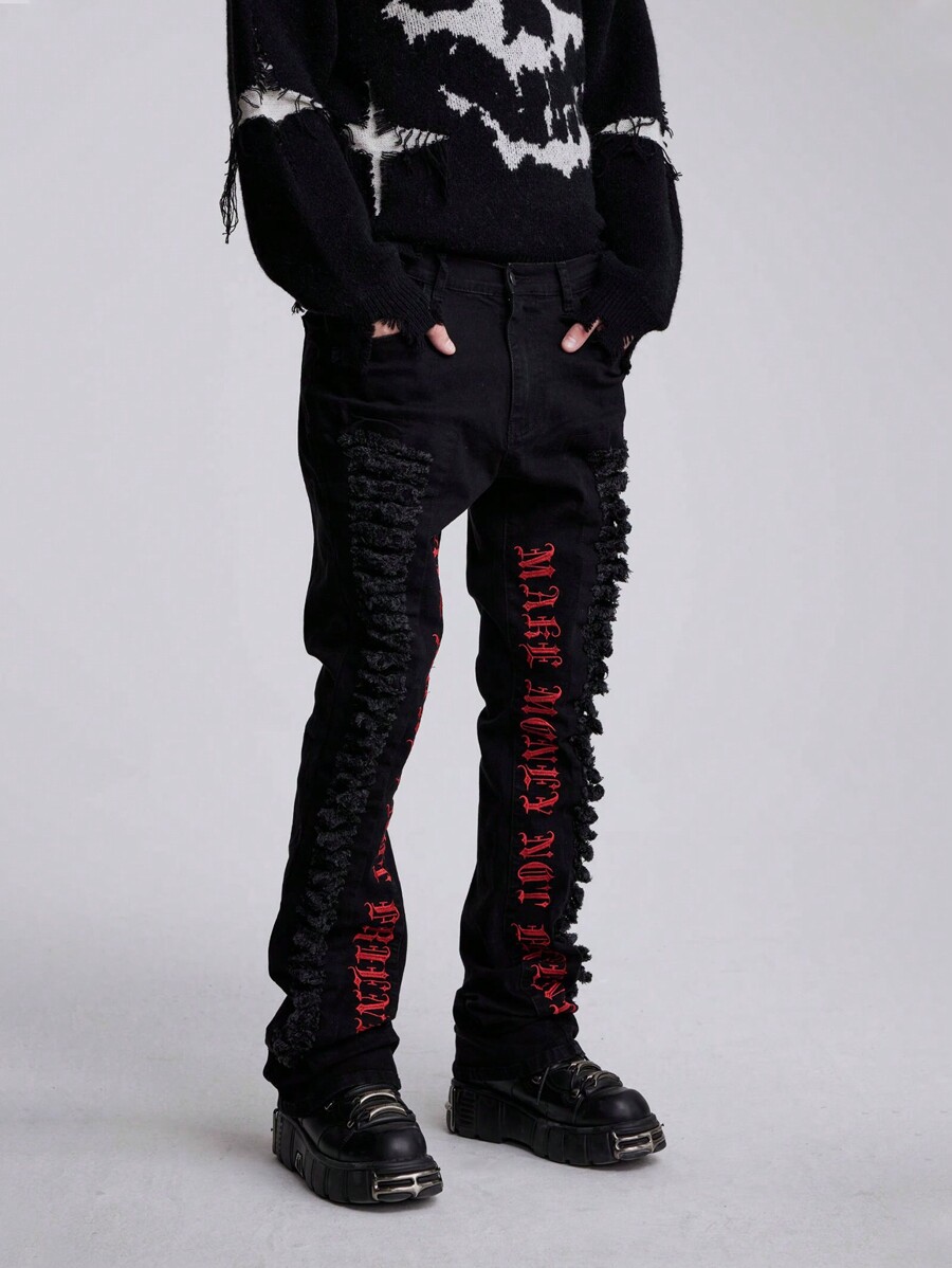 Street Life Men's Fashion Letter Embroidery Distressed Denim Jeans