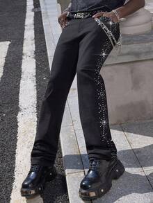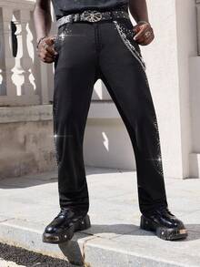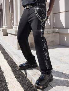 Street Life Men's Fashion Street Rhinestone Decor Flared Jeans, Belt And Chain Not Included