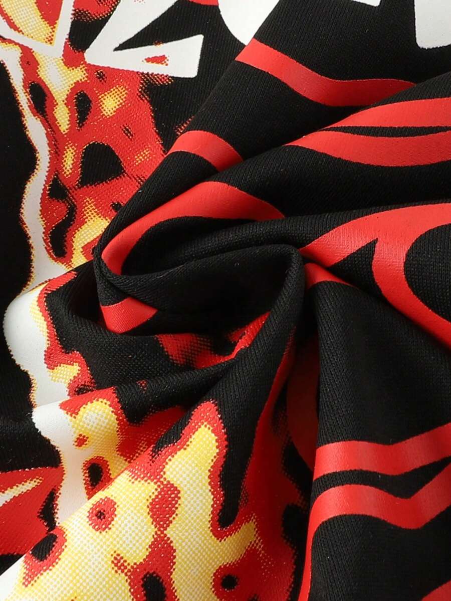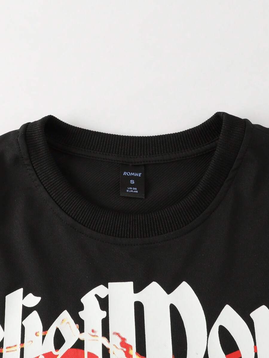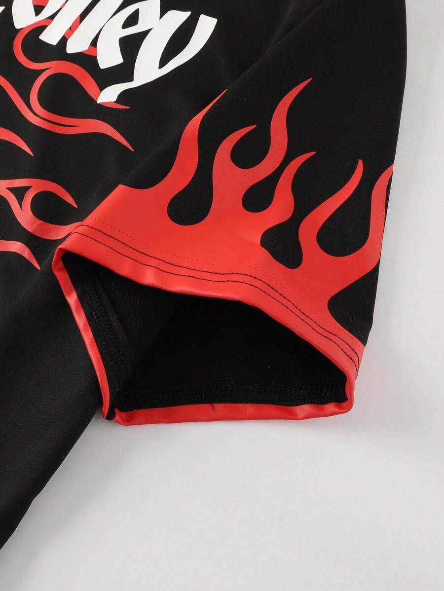 Street Life Men's Flame Skull Printed T-Shirt Set, Loose & Cropped Style