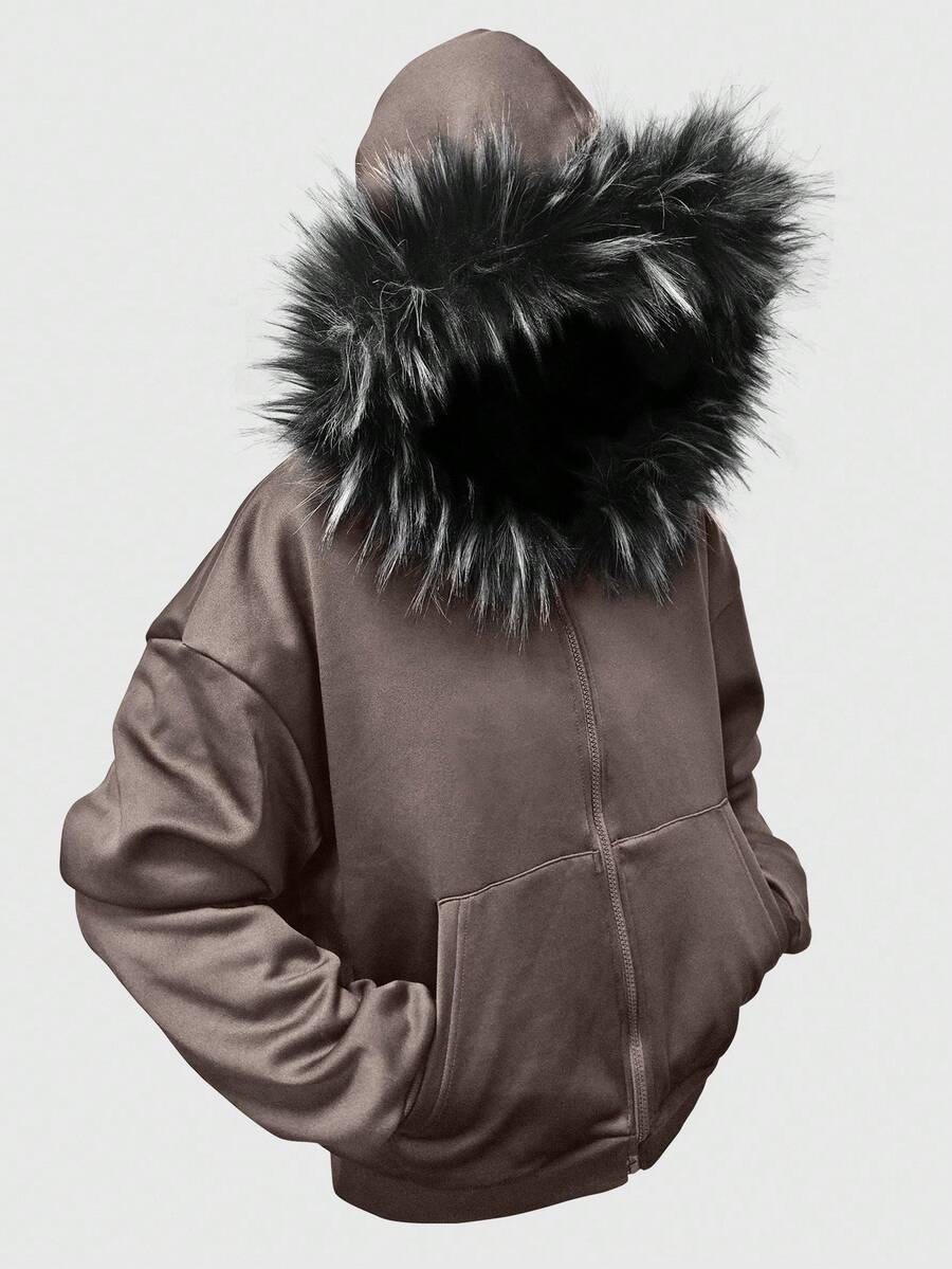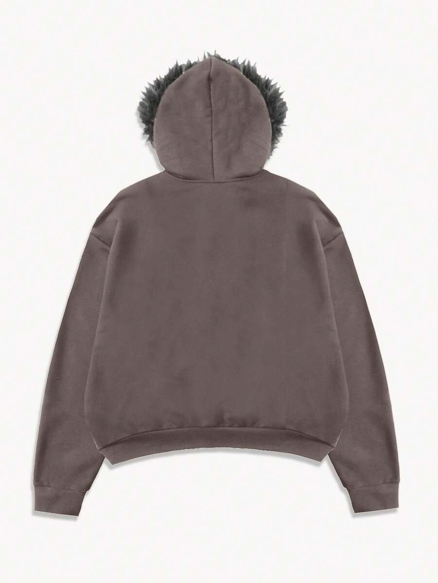 Street Life Men's Fluffy Collar Loose Short Style Sweatshirt Sweatshirt, Streetwear