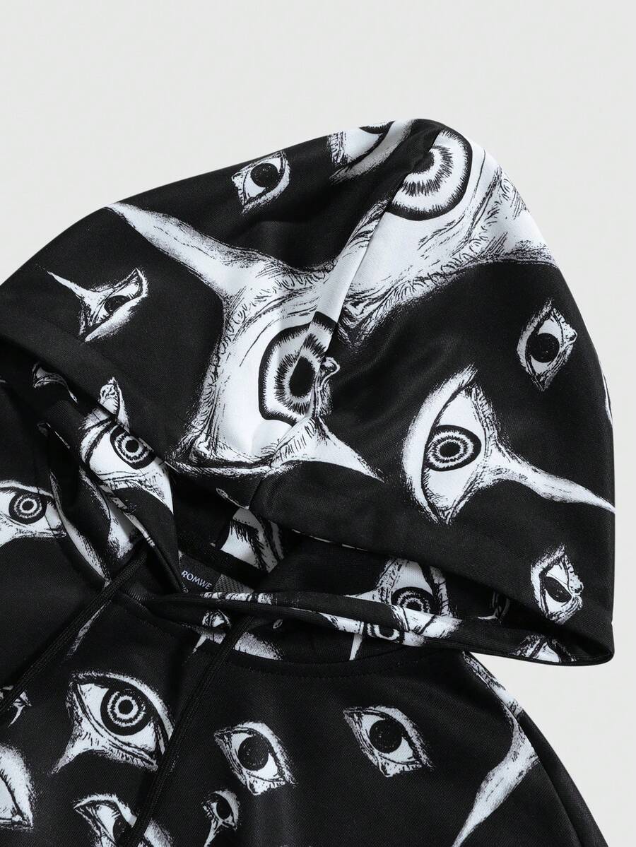 Street Life Men's Gothic Print Hooded Sweatshirt, Street Fashion Vintage Style