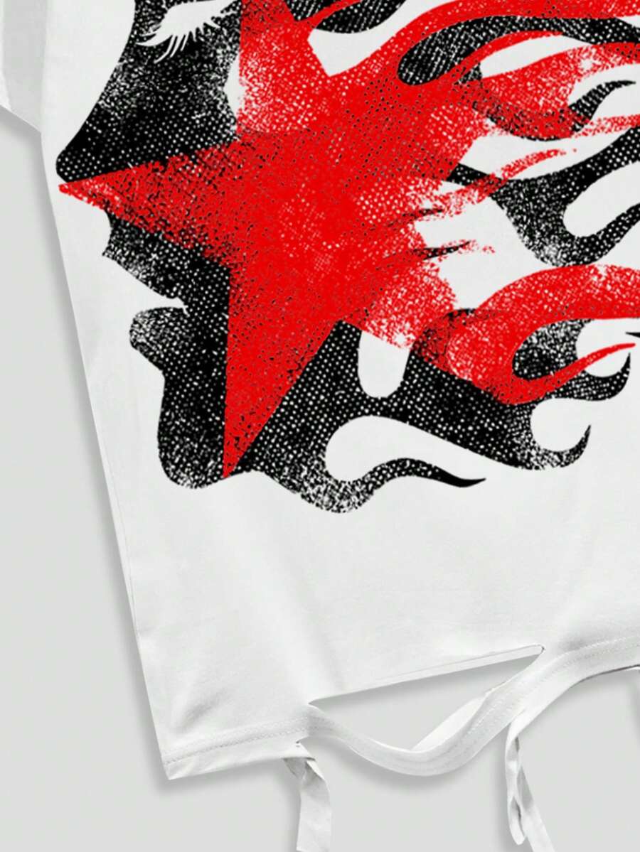Street Life Men's Gothic Print Short Sleeve T-Shirt, Suitable For Everyday Wear, Spring/Summer