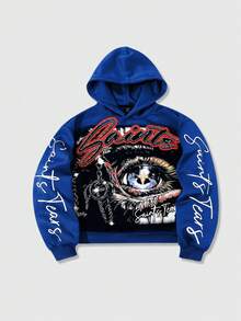 Street Life Men's Hooded Sweatshirt, Street Style, Popular American Eye Graphic Print Short Hoodie, Autumn/Winter