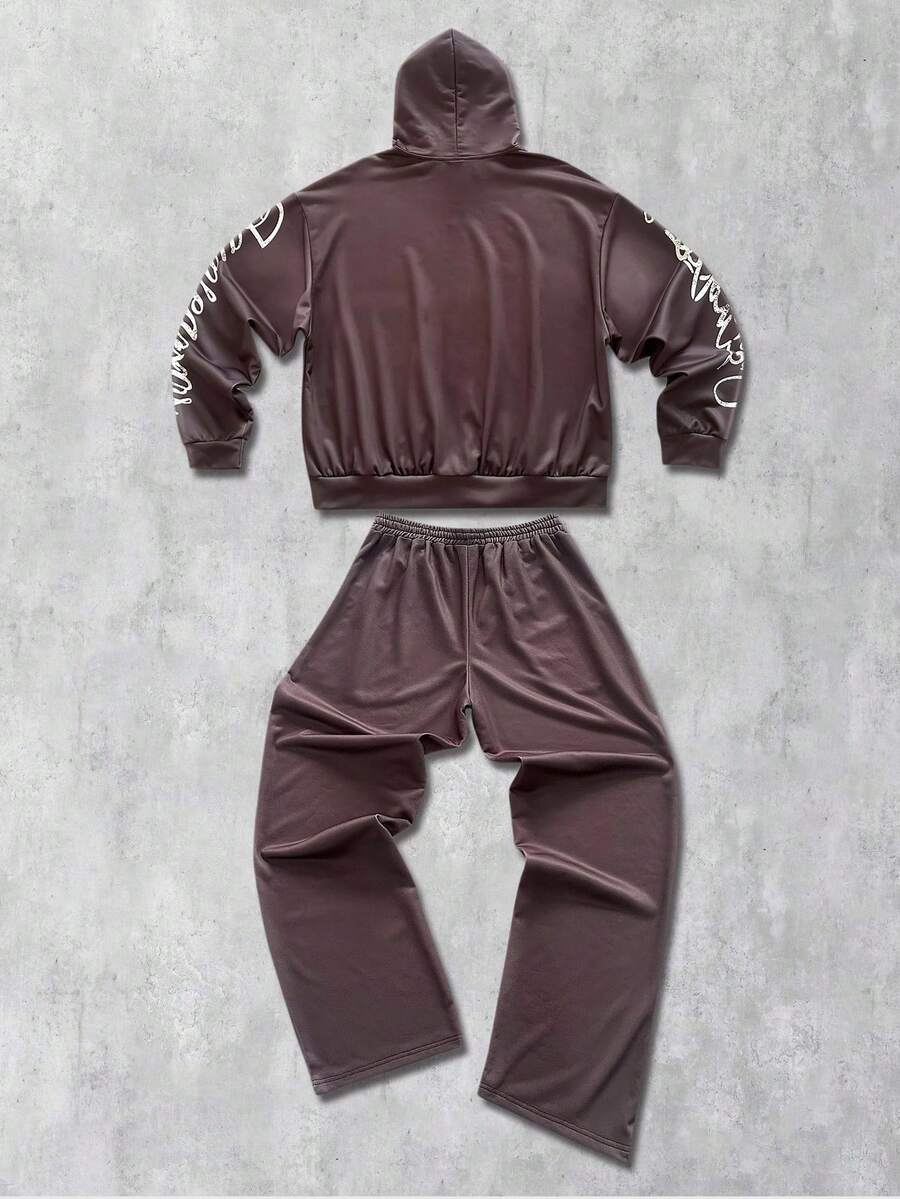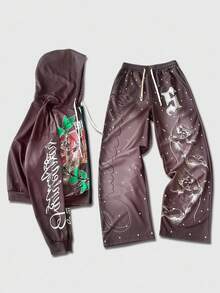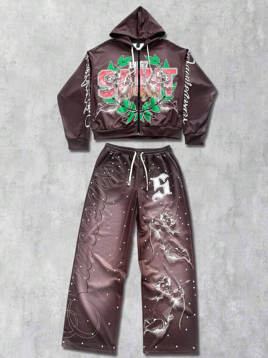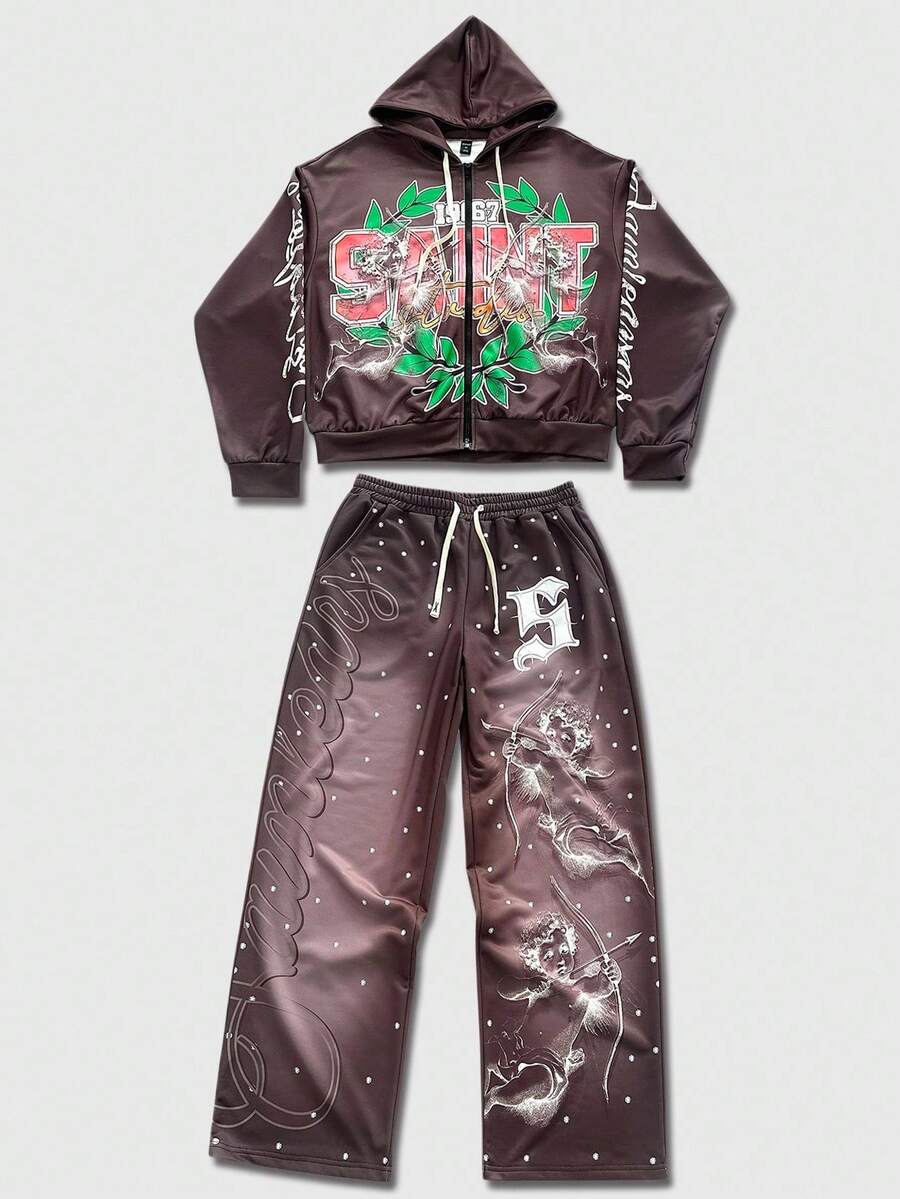 Street Life Men's Hooded Sweatsuit, Angel Child English Graphic Print Street Style Hoodie Set, Autumn/Winter
