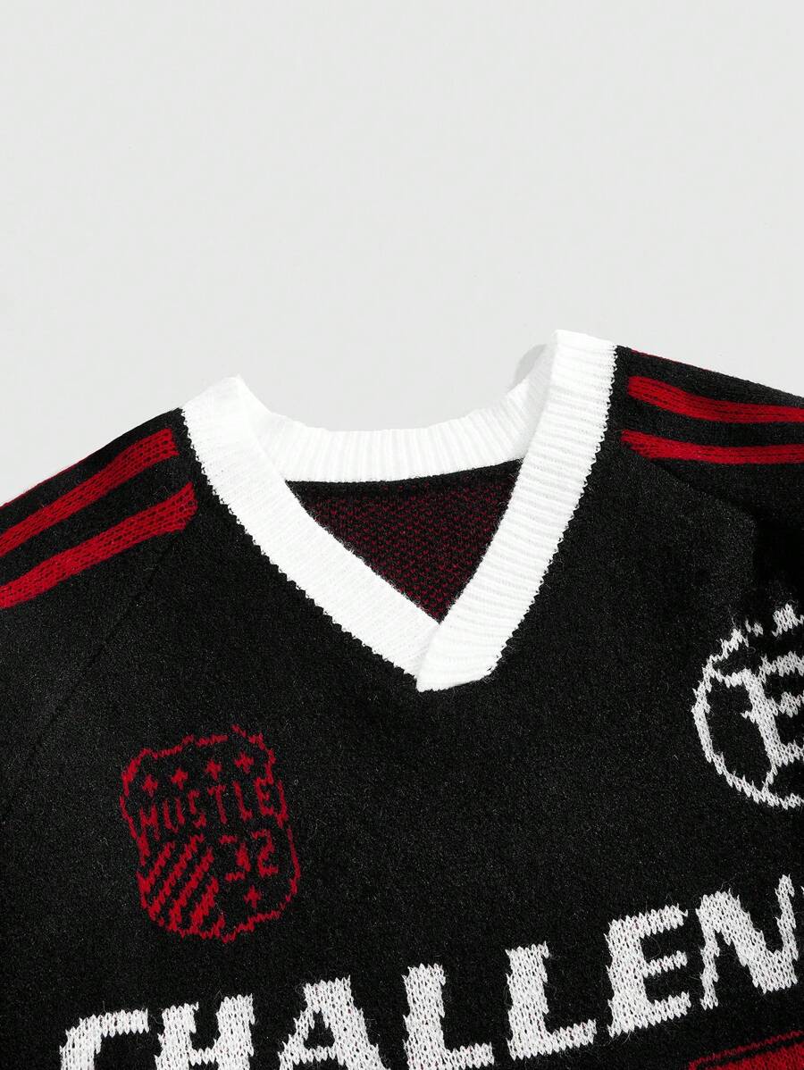 Street Life Men's Jersey V-Neck Letter Print Casual Versatile Long Sleeve Pullover Sweater