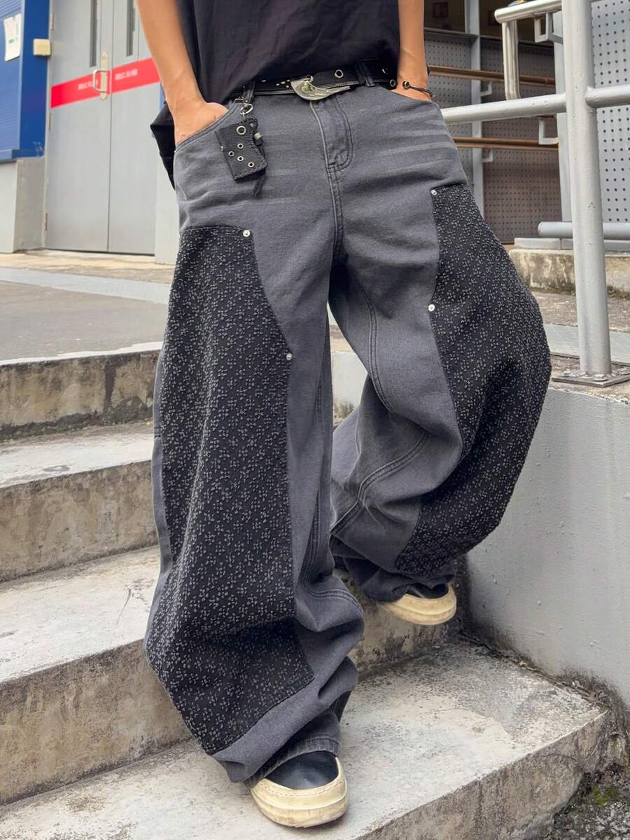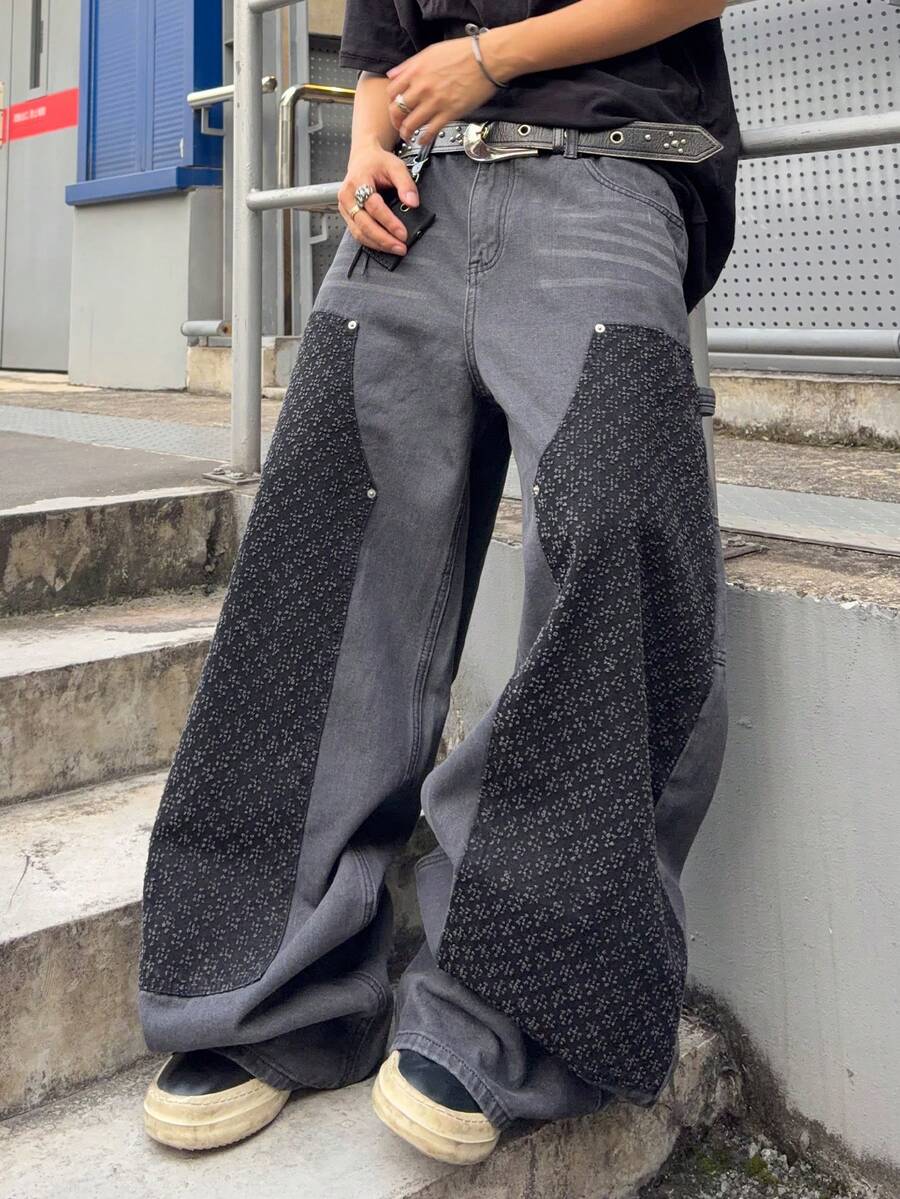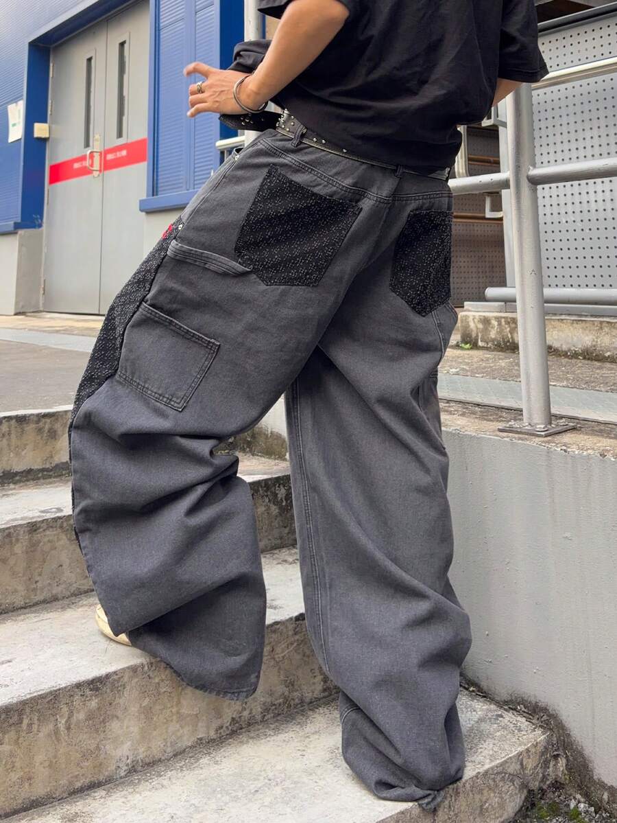 Street Life Men's KPOP Curve Pocket Wide Leg Loose Casual Jeans