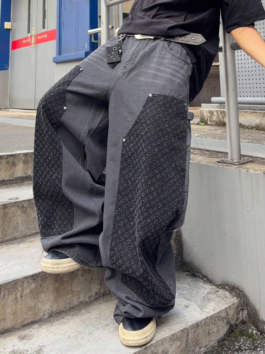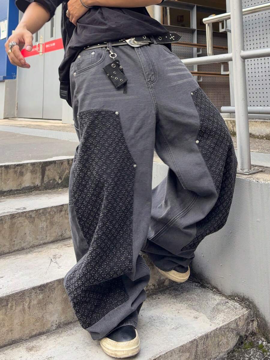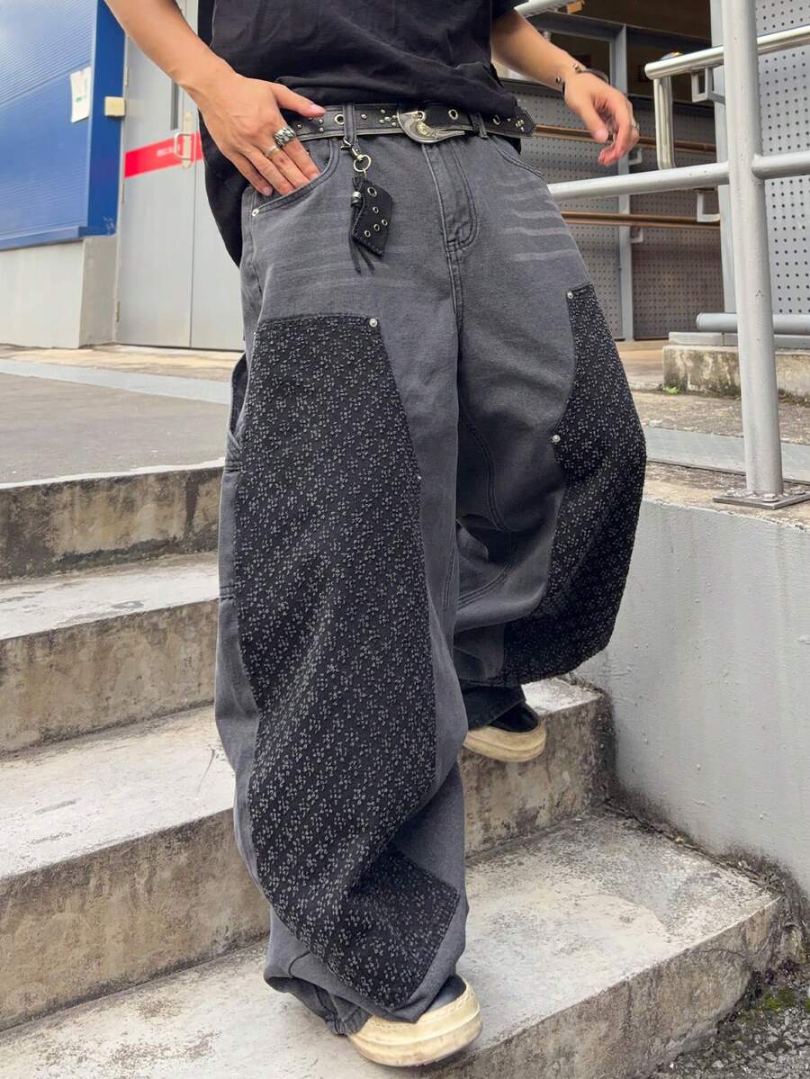 Street Life Men's KPOP Curve Pocket Wide Leg Loose Casual Jeans