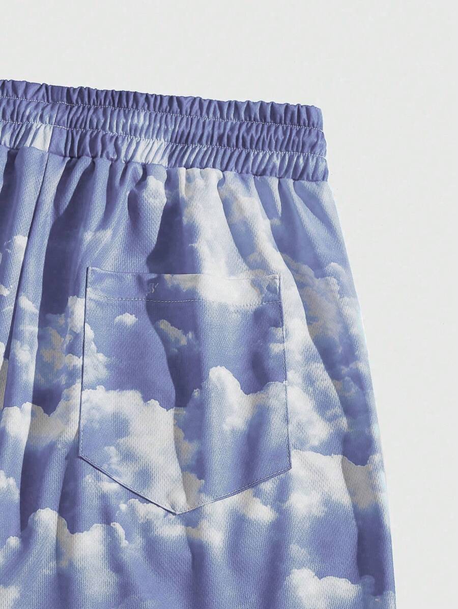 Street Life Men's Letter & Cloud Print Drawstring Waist Pocket Basketball Shorts