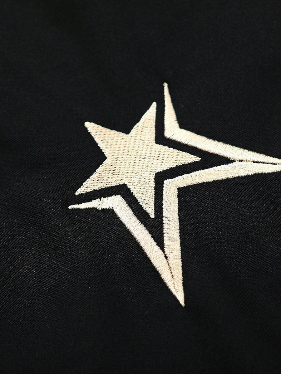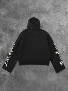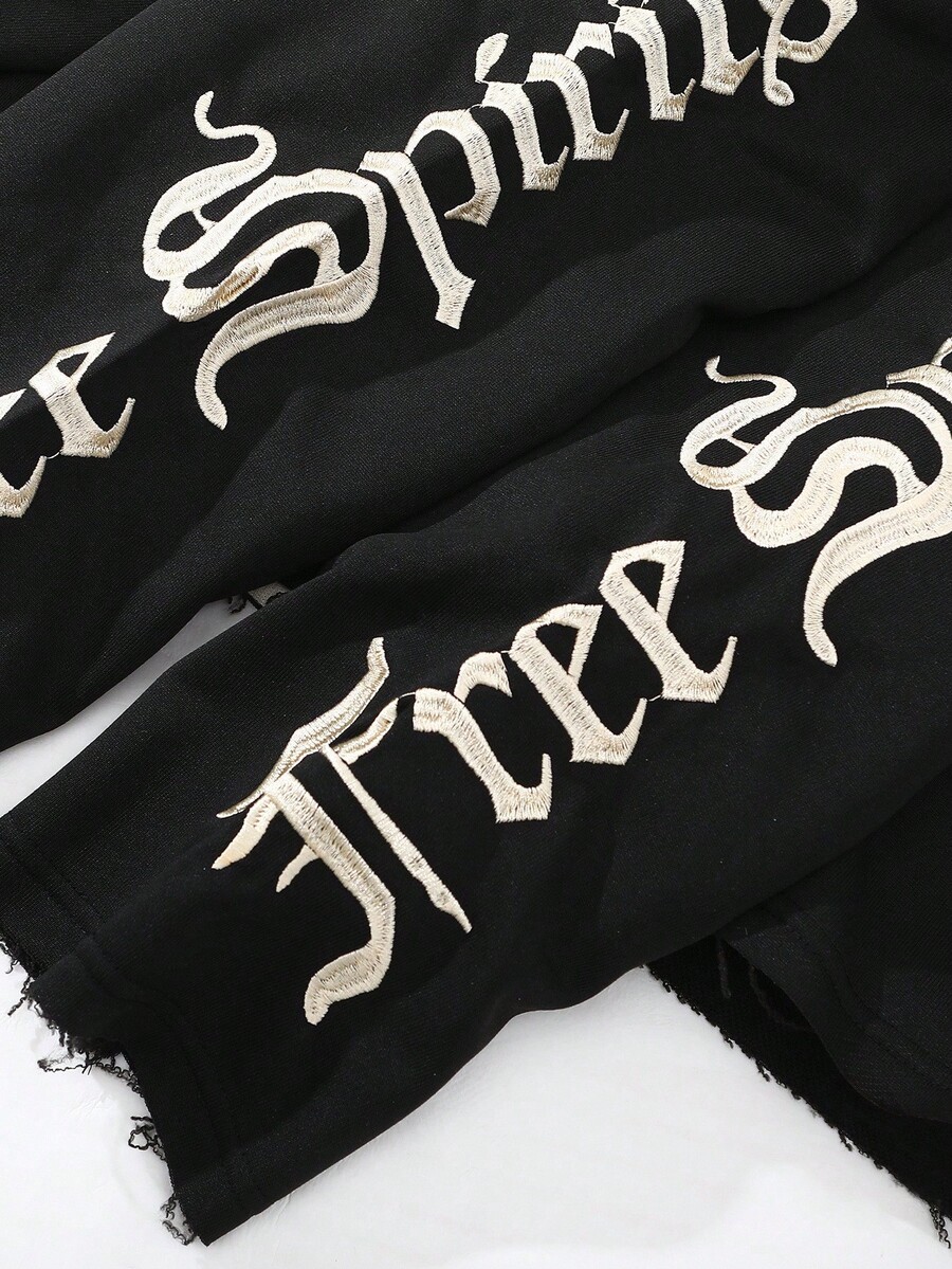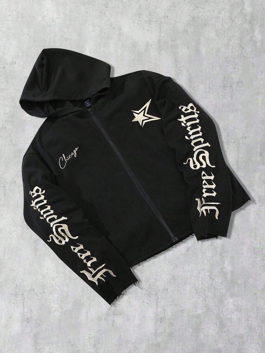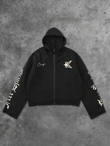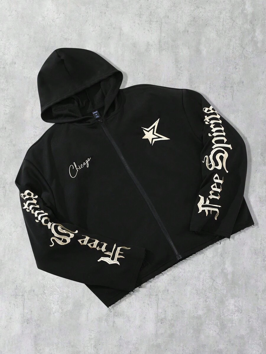 Street Life Men's Letter Embroidered Zip Up Hooded Sweatshirt, Street American Style Design , Fall