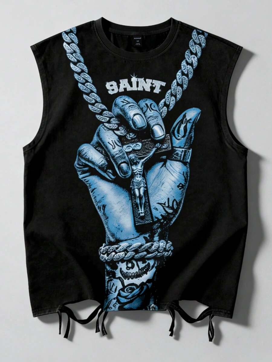 Street Life Men's Letter & Handprint Casual Versatile Daily Wear Top