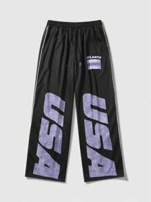 Street Life Men's Letter Print Drawstring Waist Casual Sweatpants, Spring Summer