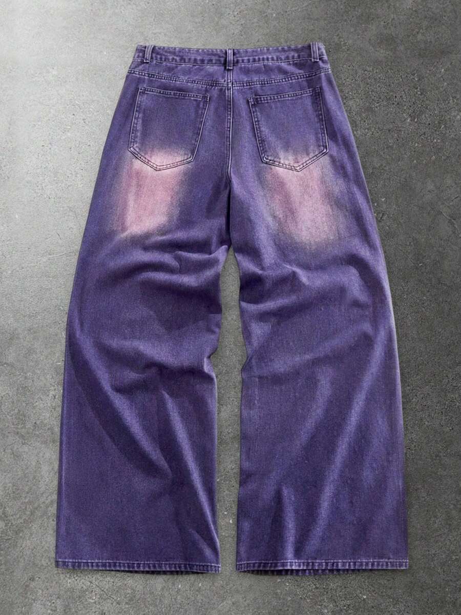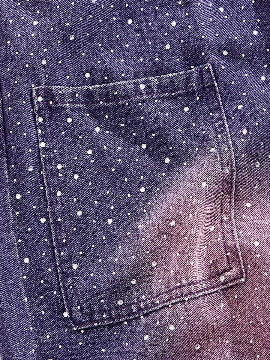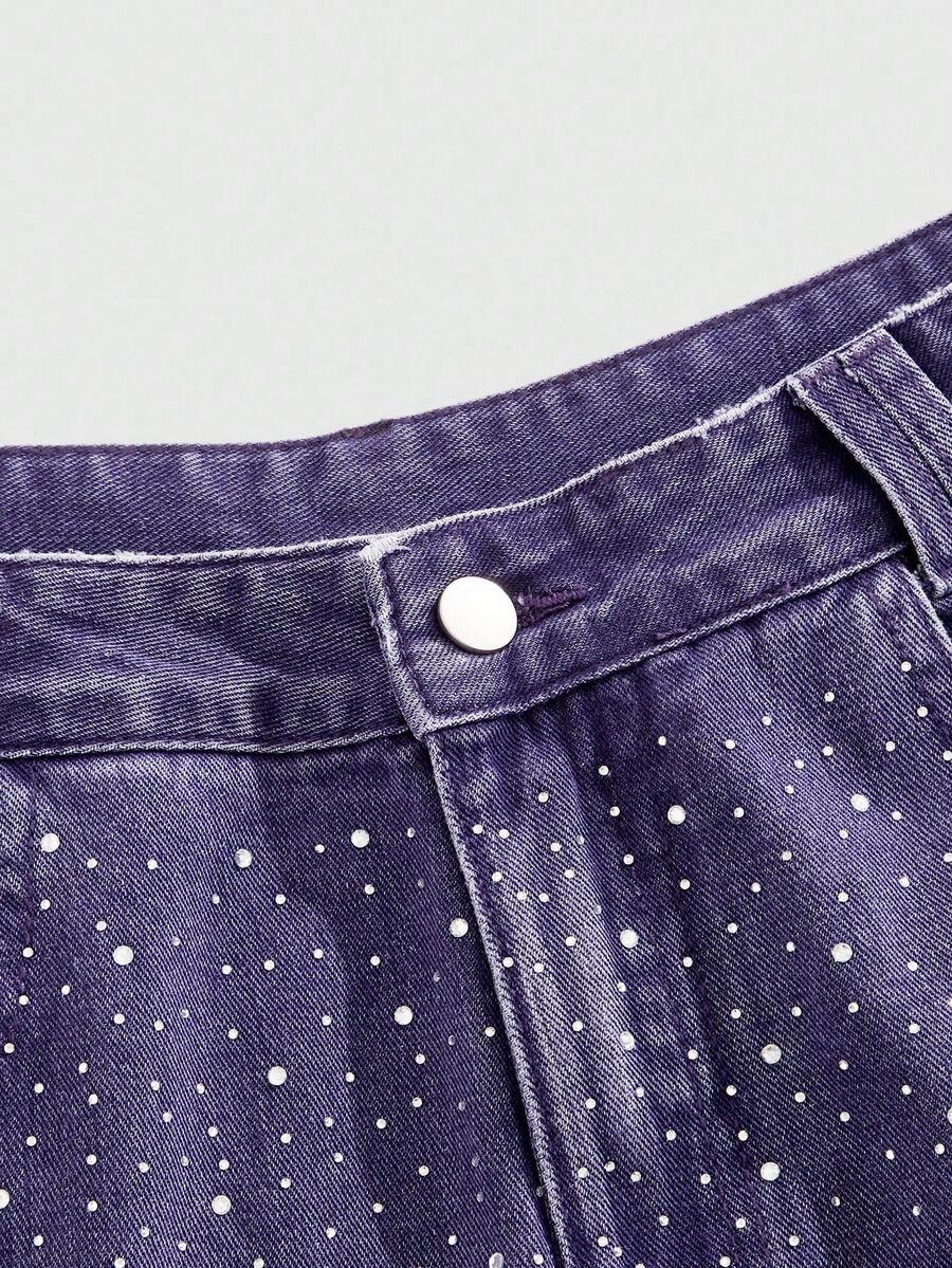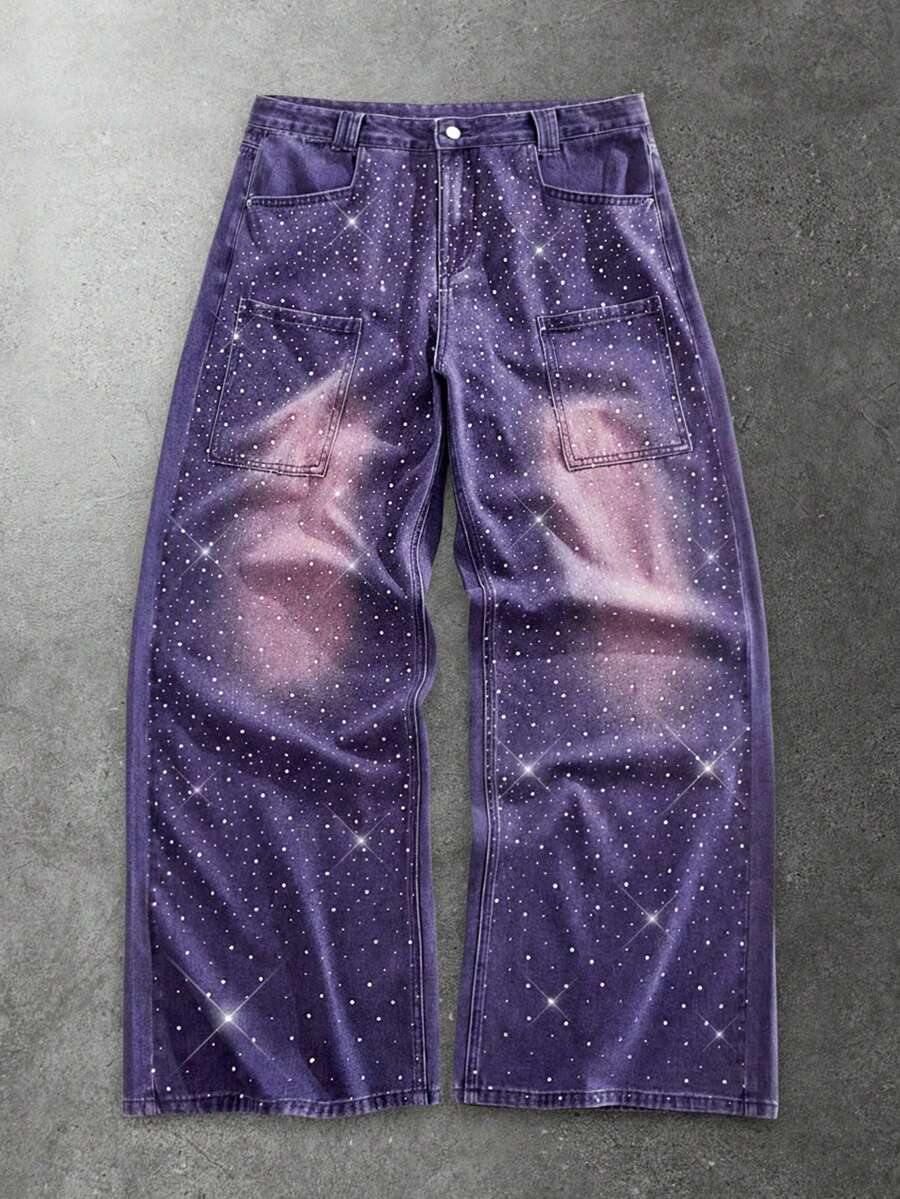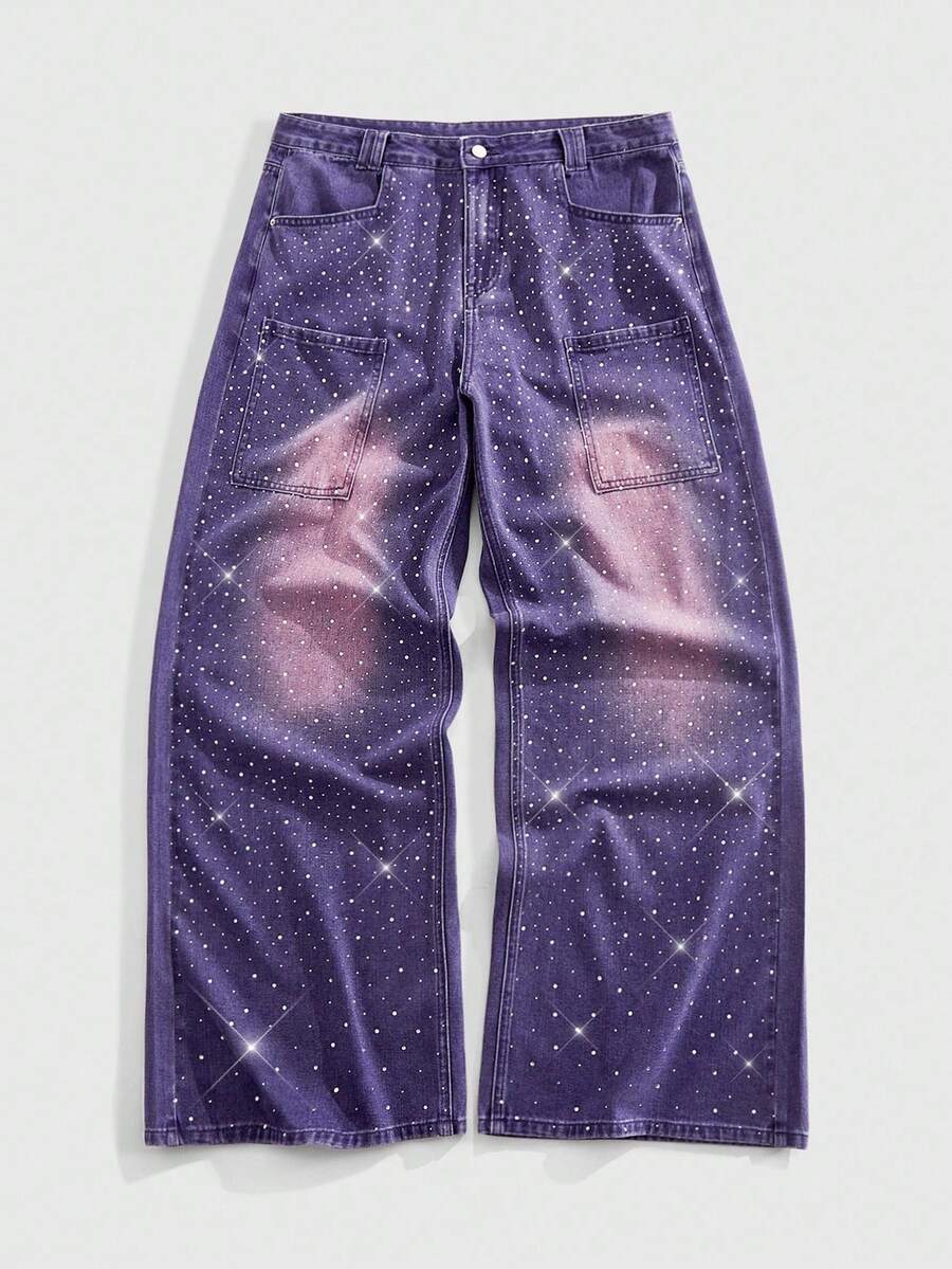 Street Life Men's Loose Distressed Rhinestone Embellished Baggy Jeans