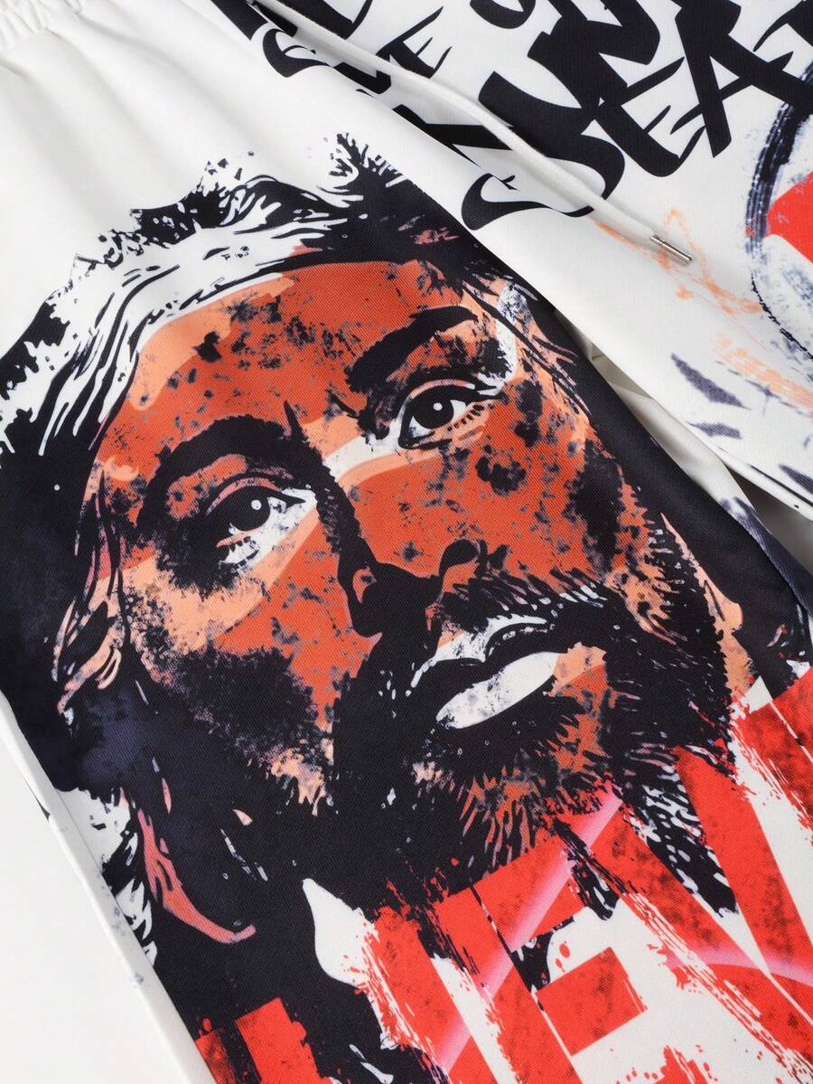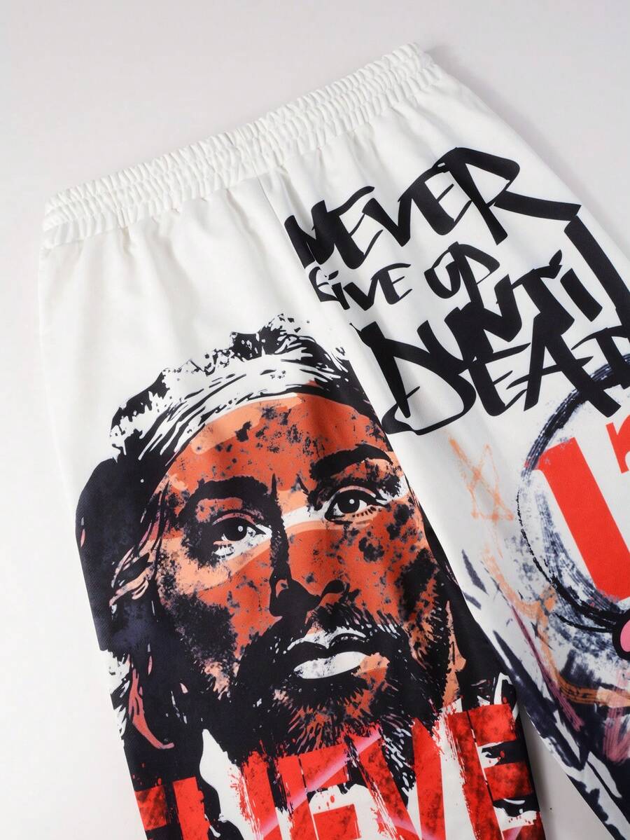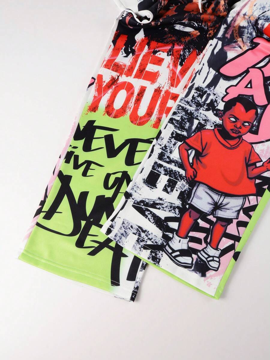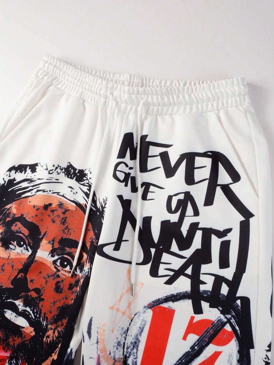 Street Life Men's Loose Graffiti Print Drawstring Waist Sweatpants, Street Style