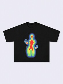 Street Life Men's Oversized Dropped Shoulder Short Style Graphic T-Shirt, Retro Street Fashion
