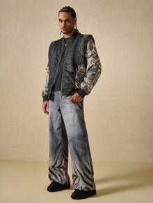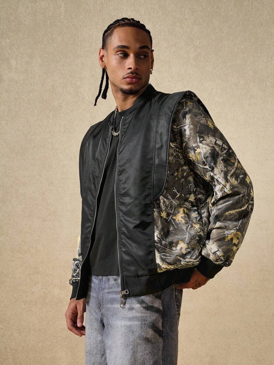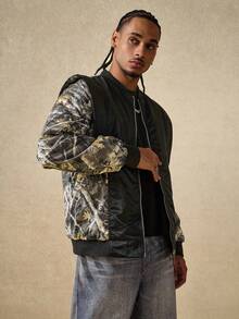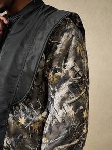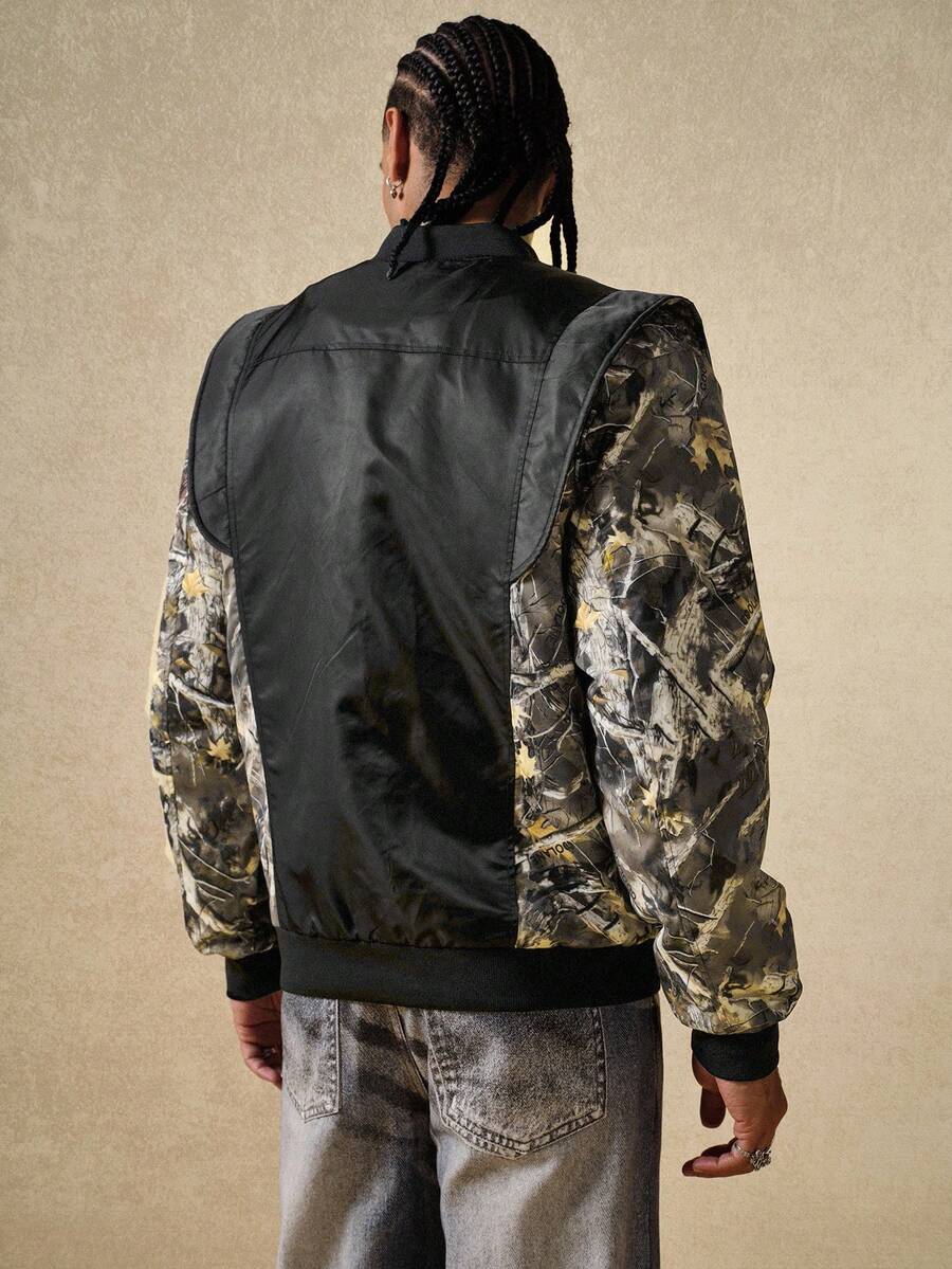 Street Life Men's Patchwork Branch Pattern Long Sleeve Zip-Up Casual Baseball Collar Winter Jacket , Fall