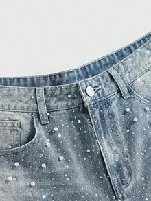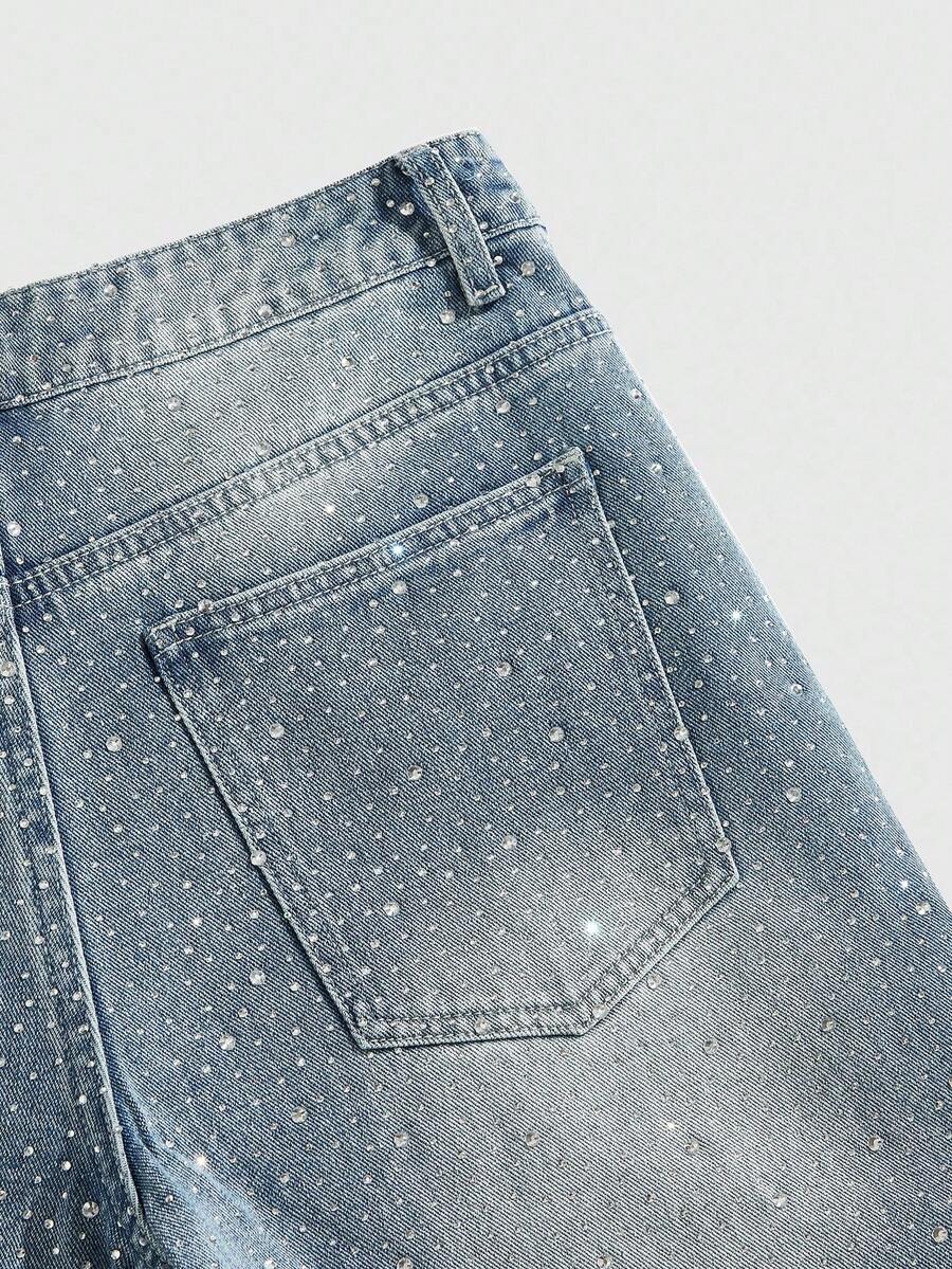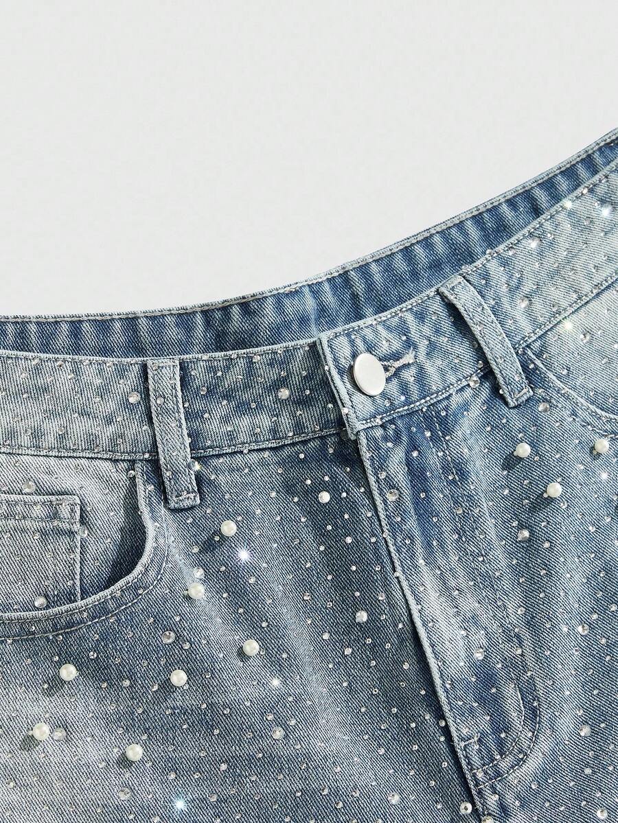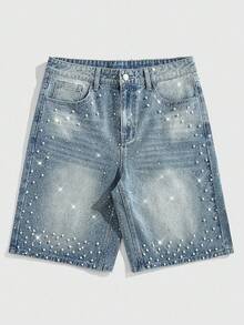 Street Life Men's Pearl & Diamond Embellished Loose Denim Shorts