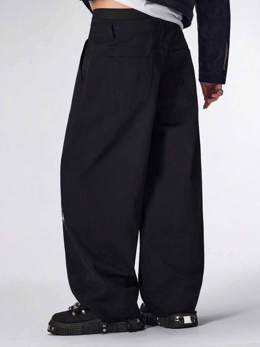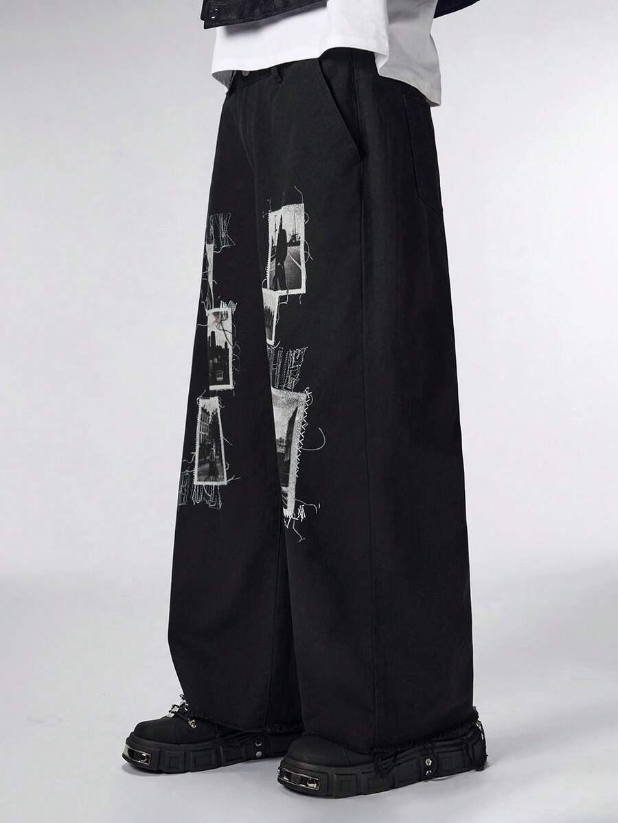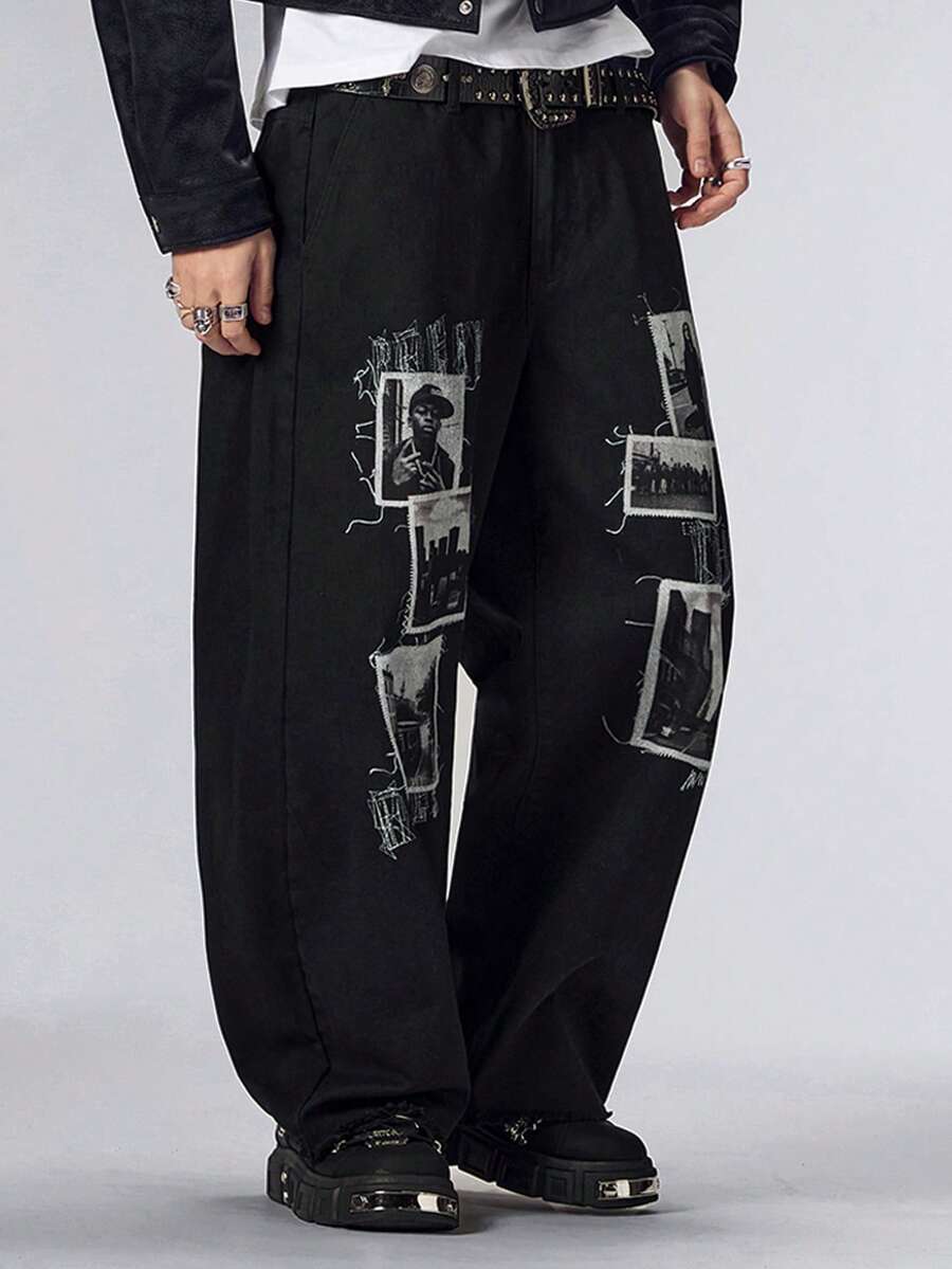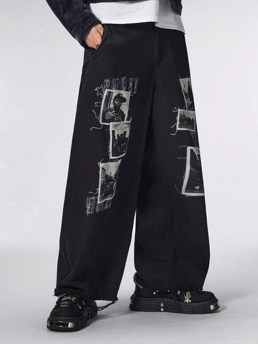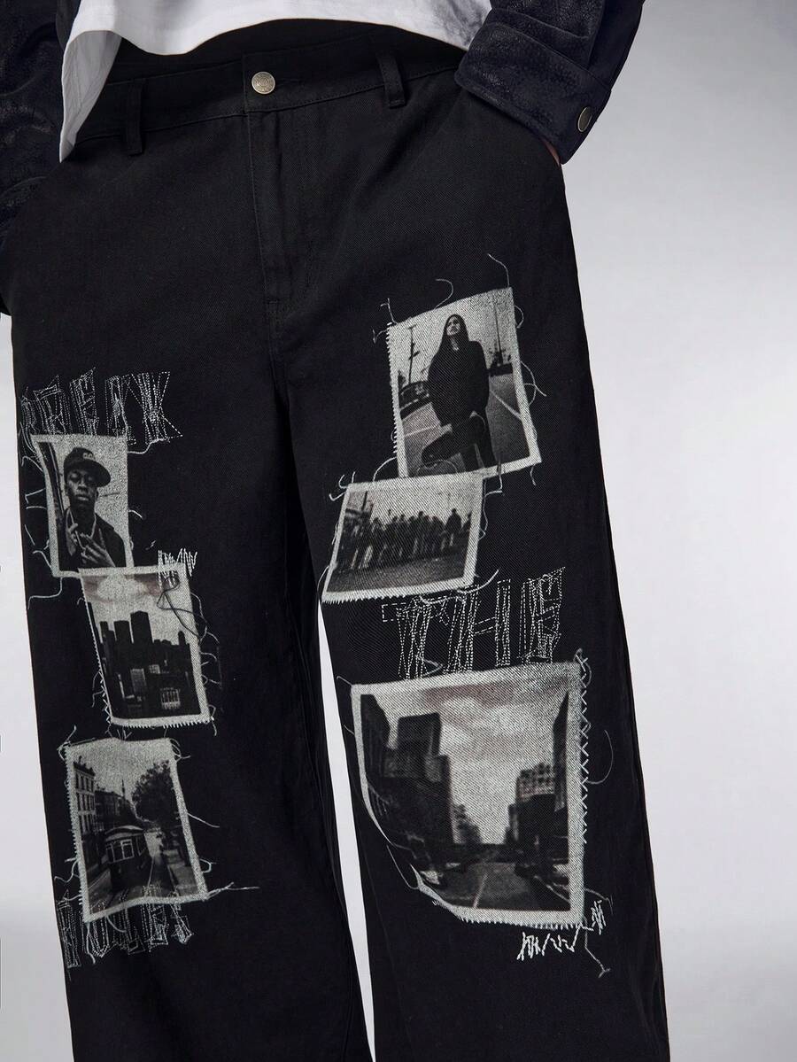 Street Life Men's Photo Graphic Print Dark Wash Distressed Jeans
