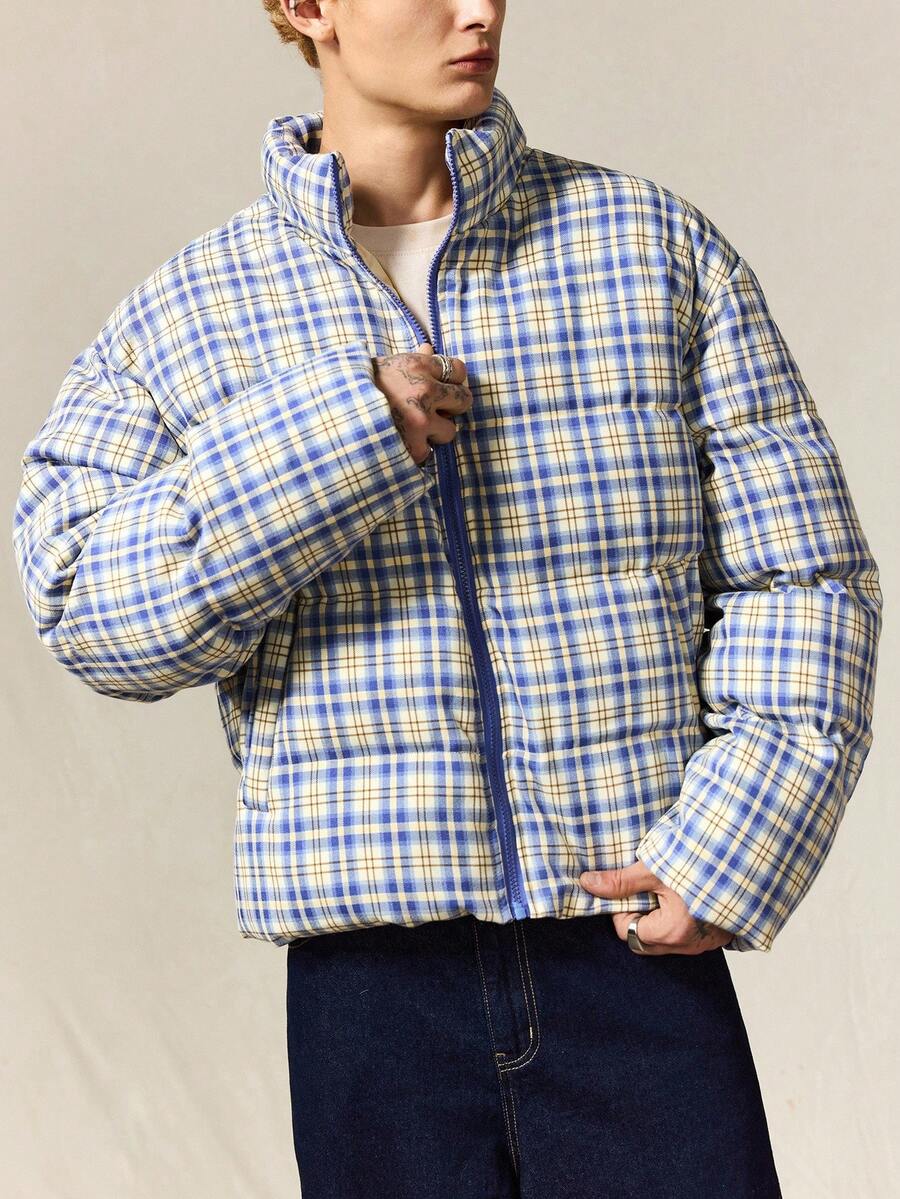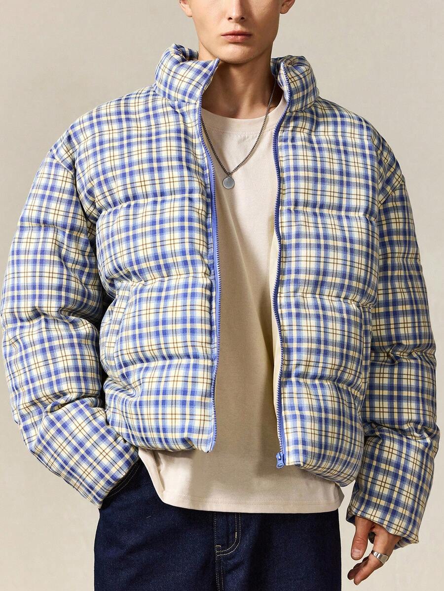 Street Life Men's Plaid Zip-Up Loose Fit Winter Jacket