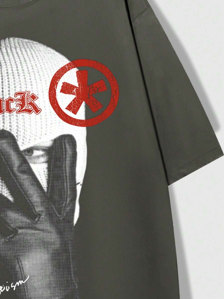 Street Life Men's Portrait Print Short Sleeve T-Shirt, Suitable For Everyday Wear, Spring And Summer