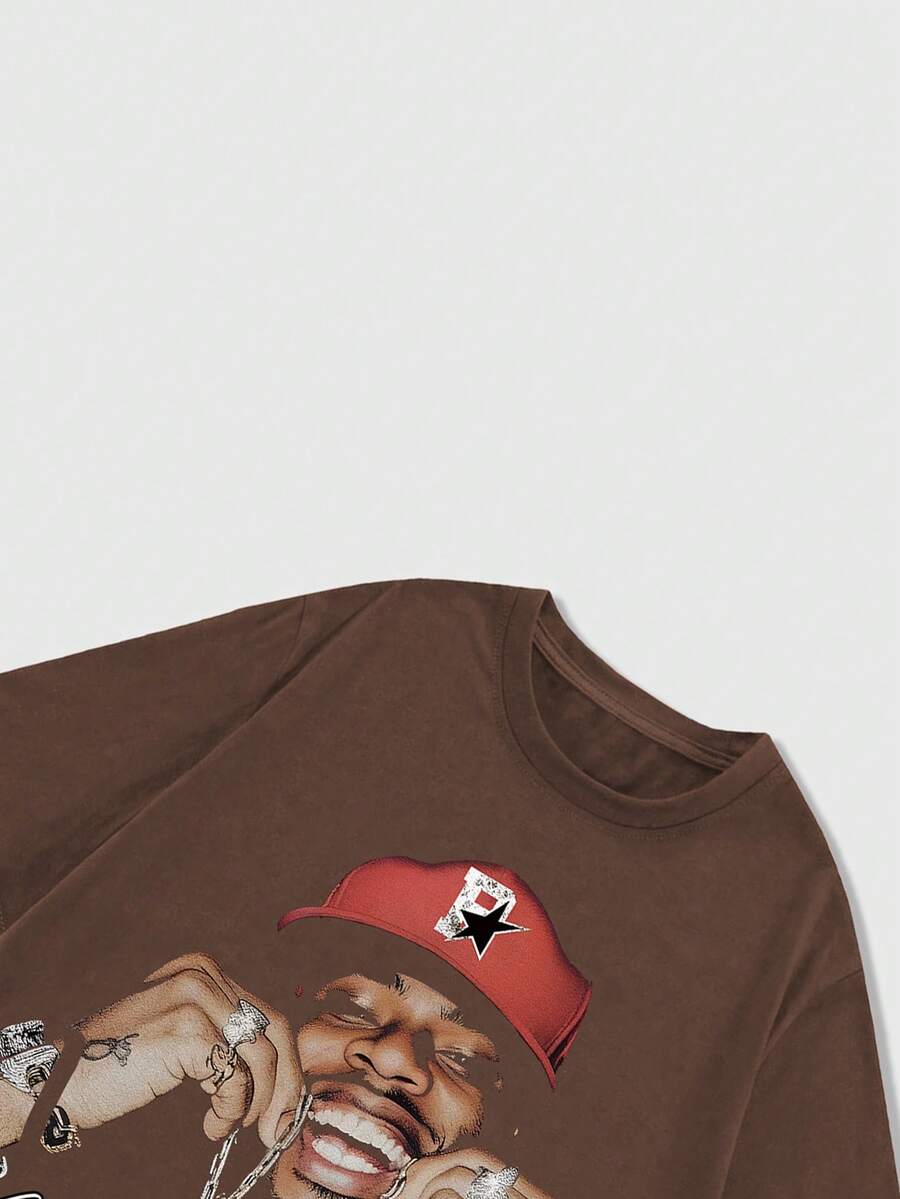 Street Life Men's Portrait Printed Short Sleeve T-Shirt, Suitable For Daily Wear In Spring And Summer, School