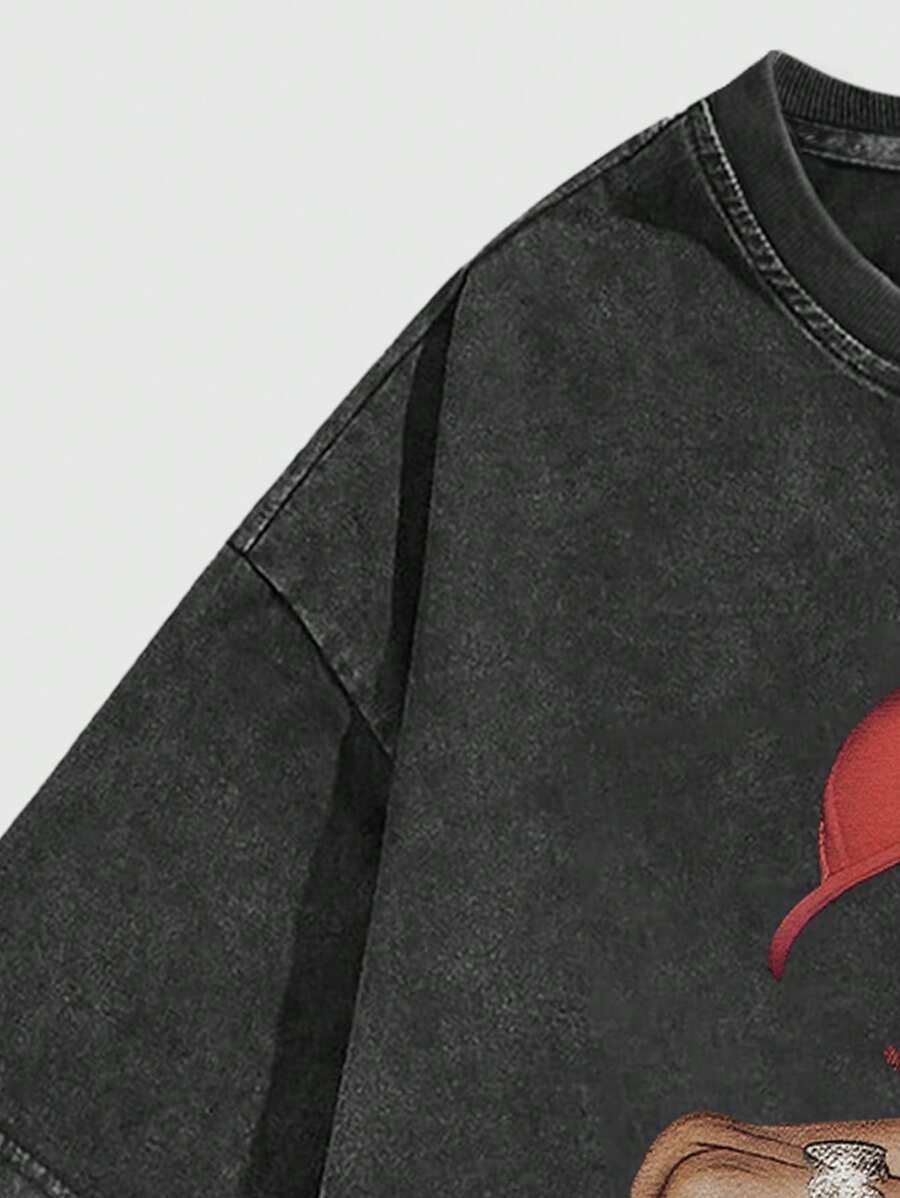 Street Life Men's Portrait & Acid-Washed Short Sleeve T-Shirt, Suitable For Spring/Summer Daily Wear