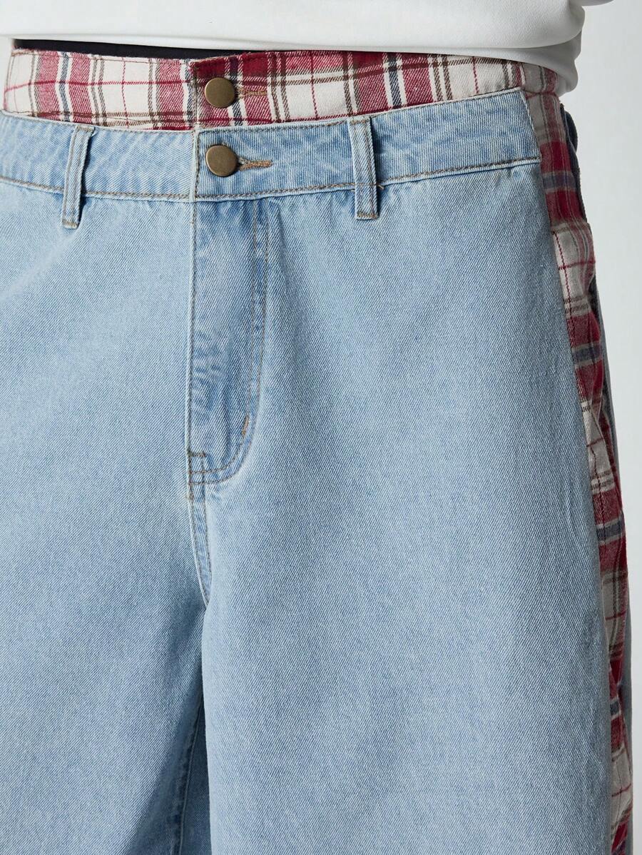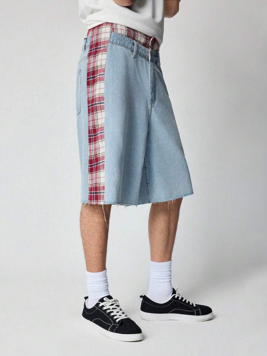 Street Life Men's Prep Patchwork Plaid Casual Loose Denim Shorts