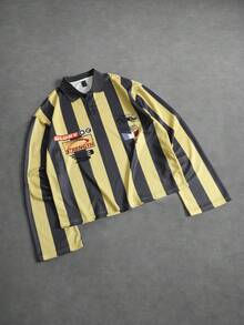 Street Life Men's Preppy Contrast Color Simple Print Long Sleeve Polo Shirt