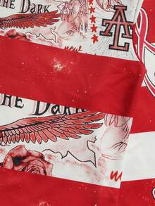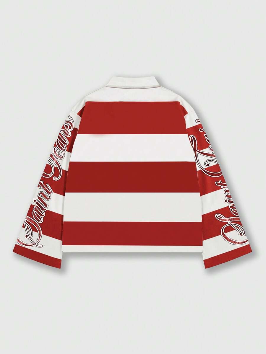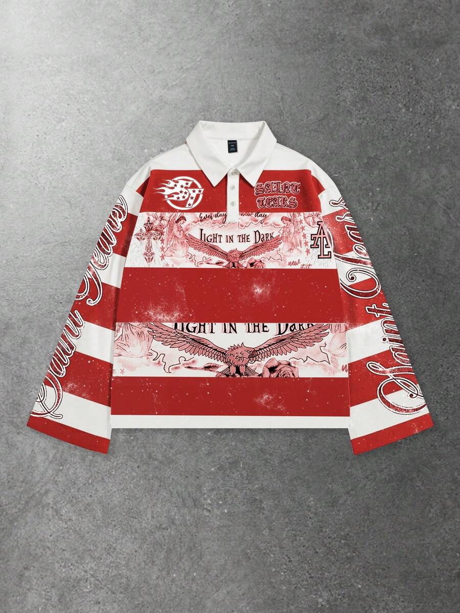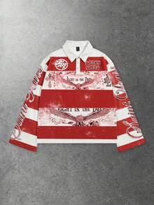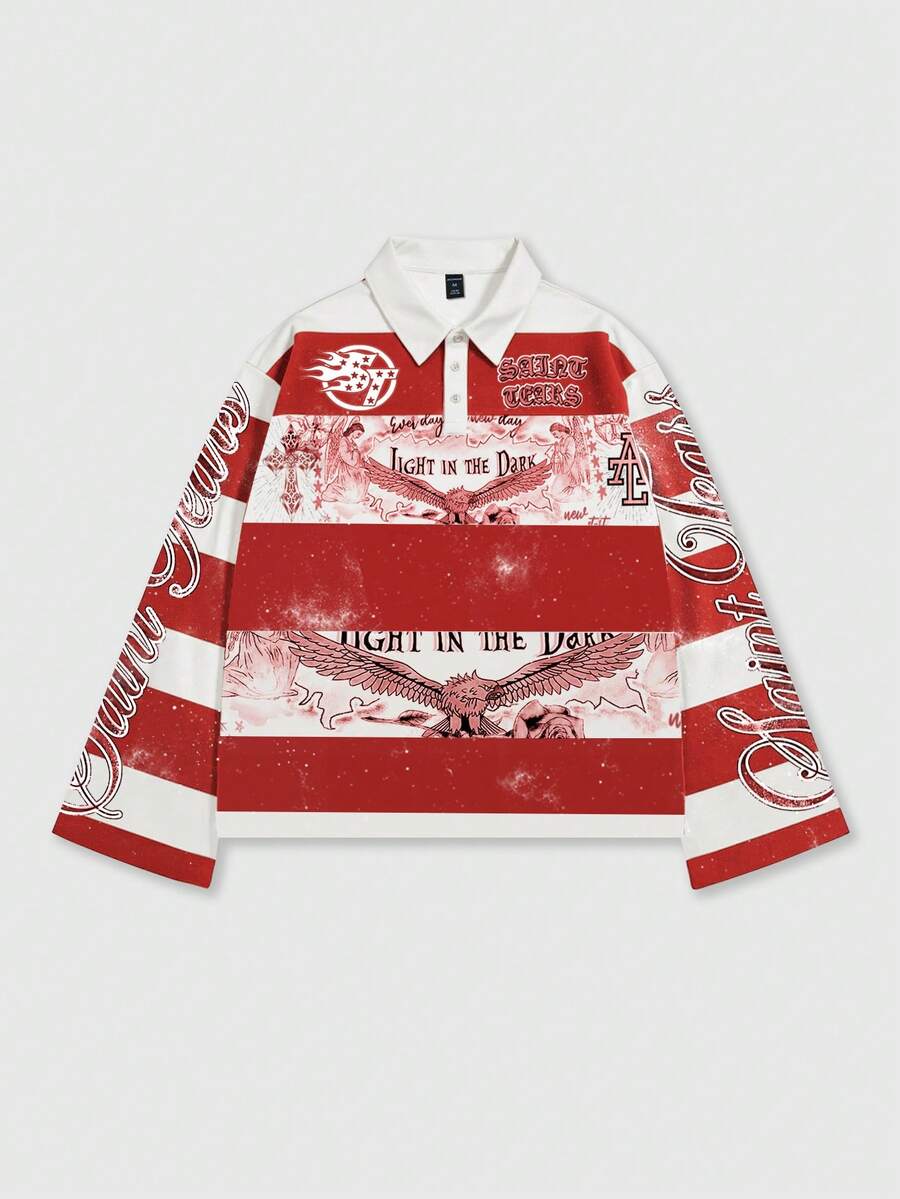Street Life Men's Printed Long Sleeve Striped Polo Collar T-Shirt, Casual College Style Top
