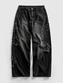 Street Life Men's Punk Loose Fit Star Embroidered Denim Jeans