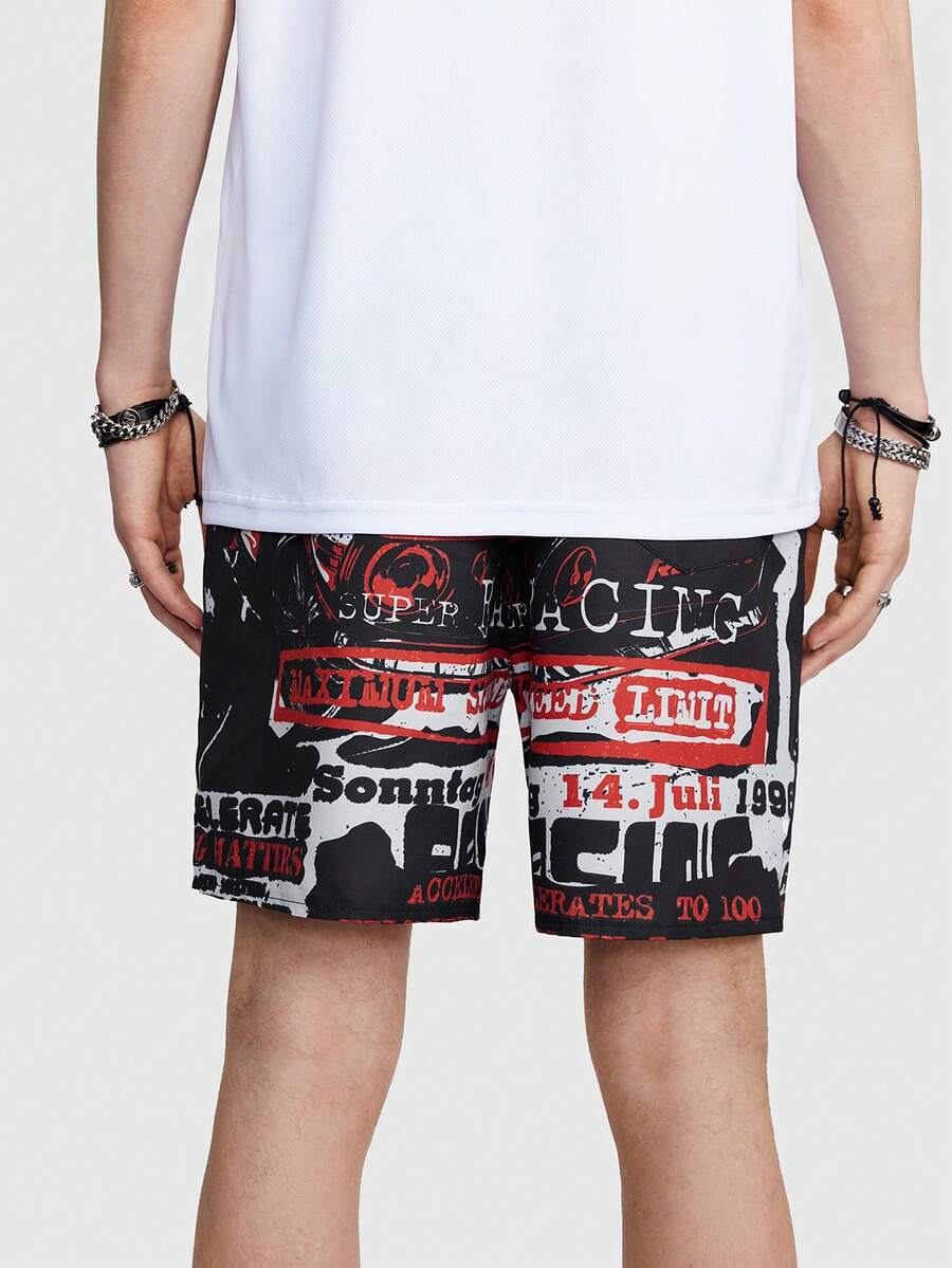 Street Life Men's Racing Letter Printed Shorts, Suitable For Summer