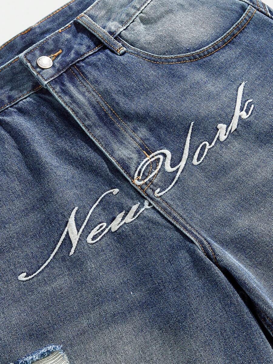 Street Life Men's Retro Rhinestone Decorated Shorts, European And American Streetwear Style