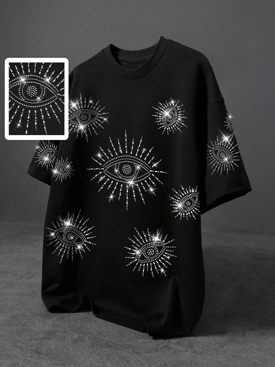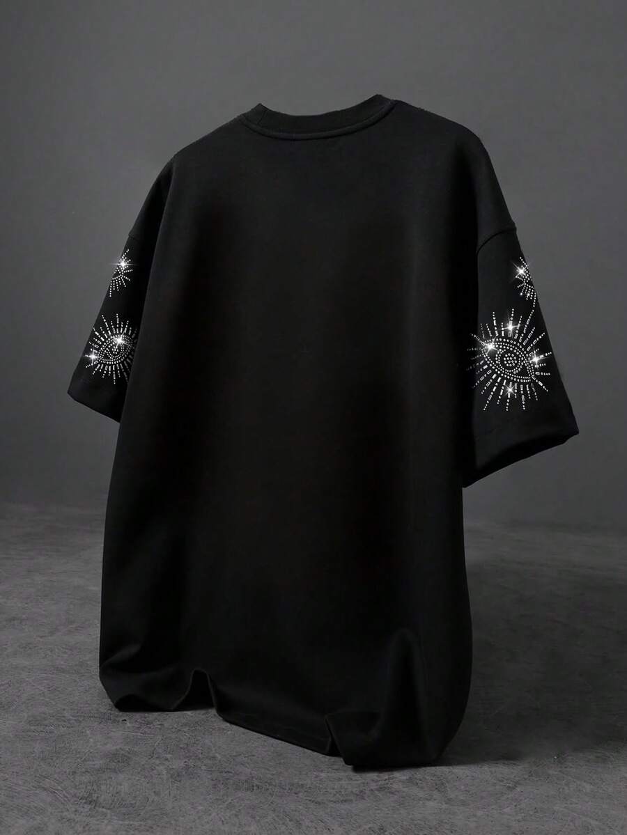 Street Life Men's Rhinestone Embellished Short Sleeve T-Shirt, Suitable For Spring/Summer Everyday Wear