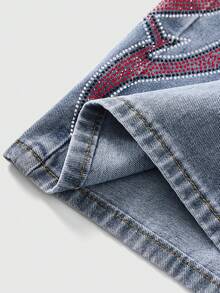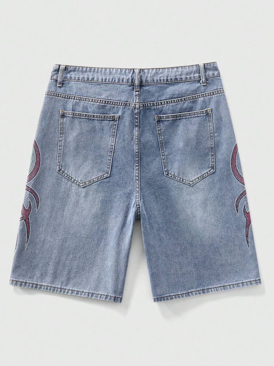 Street Life Men's Rhinestone Flame Pattern Pocket Casual Denim Shorts
