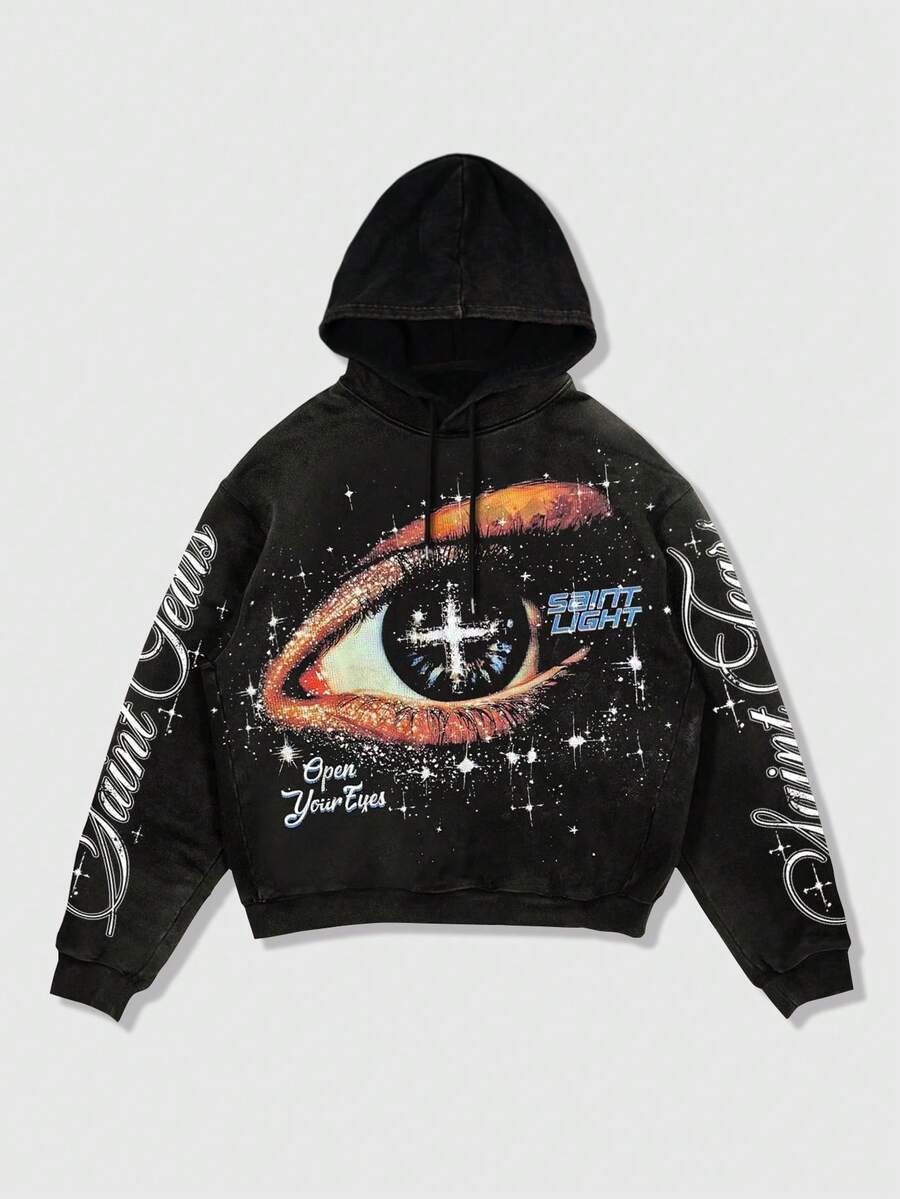 Street Life Men's Snowflake & Eye Graphic Hoodie Sweatshirt, Casual Wear For Autumn/Winter