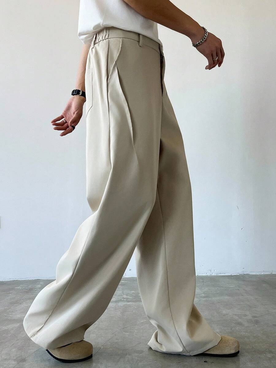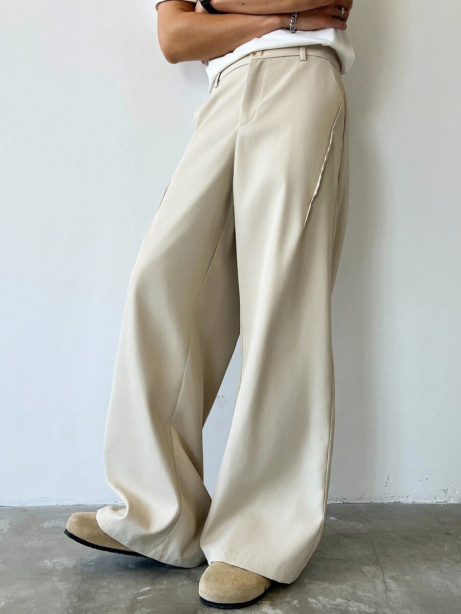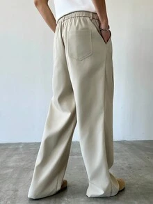 Men's Solid Color Pocket Casual Slim Flare Leg Pants, Fall