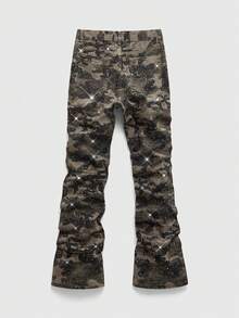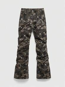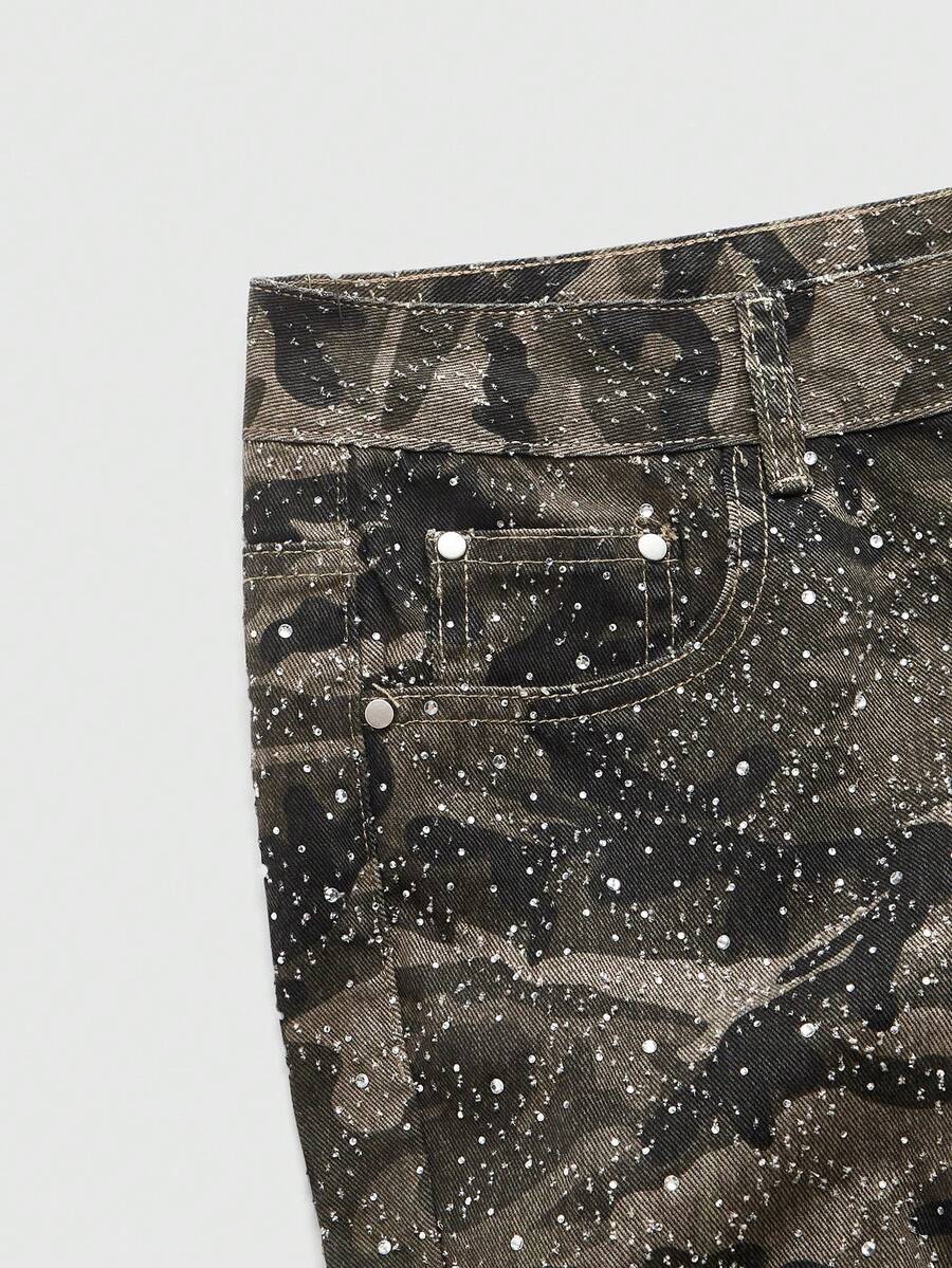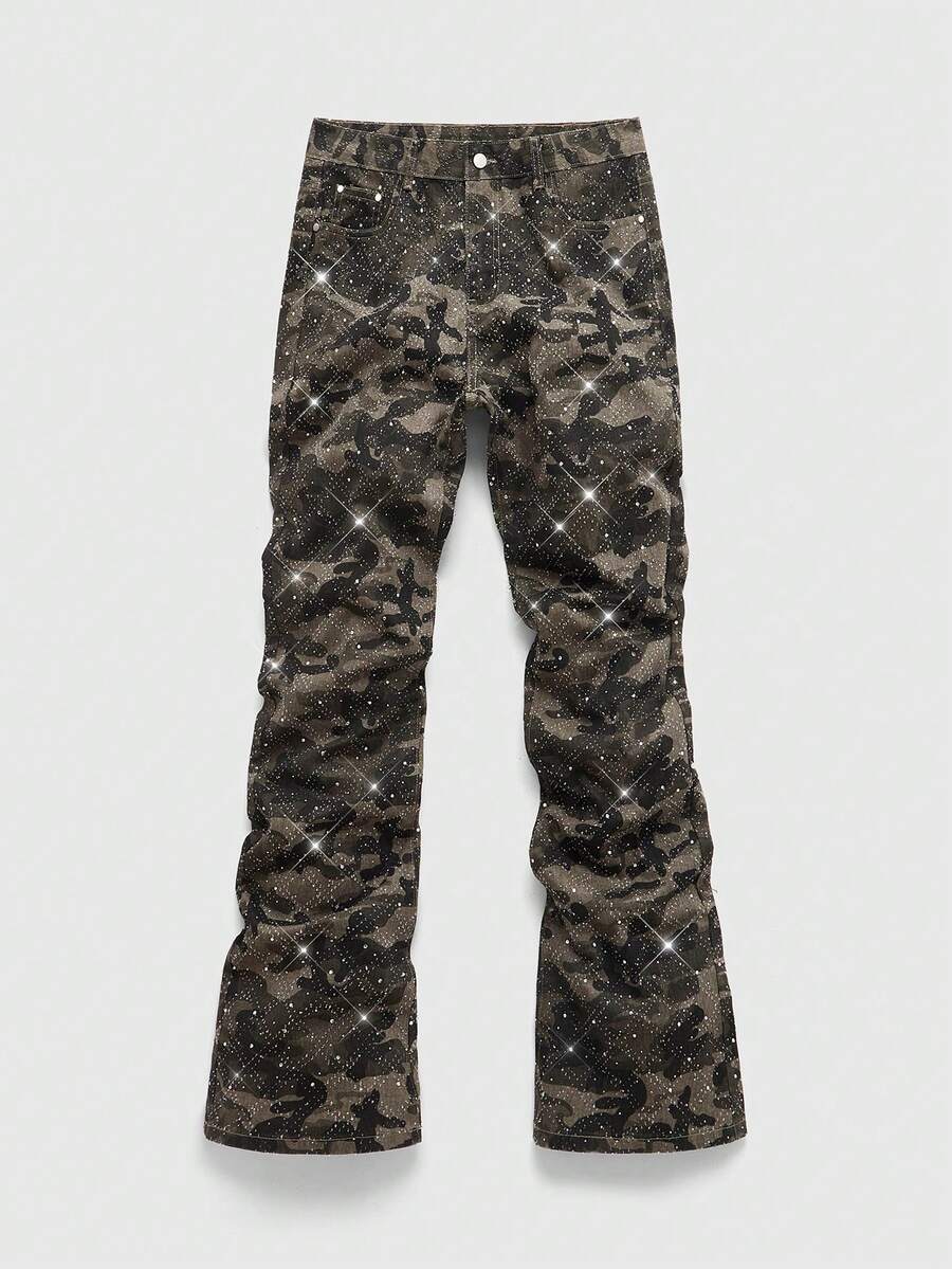 Street Life Men's Sparkling Diamond Layered Flare Camouflage Jeans