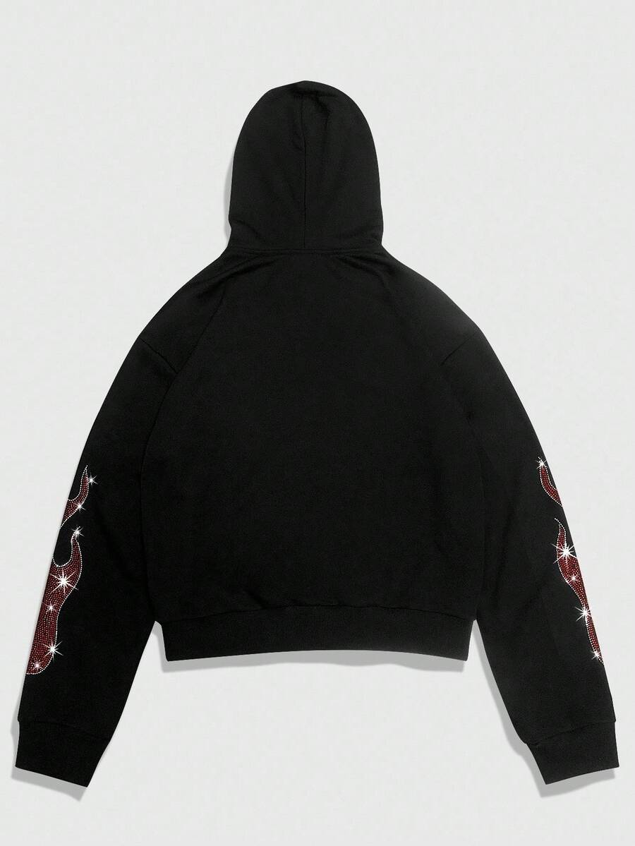Street Life Men's Sparkling Diamond Print Hoodie, Loose Cropped Style , Fall