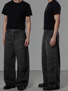 Street Life Men's Spider Web Digital Print Buckle Fly Denim Jeans
