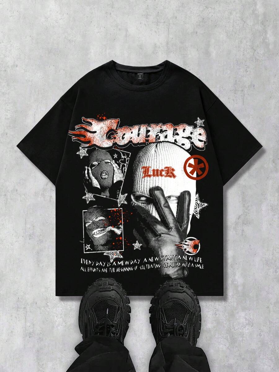 Street Life Men's Street Figure Print Short Sleeve T-Shirt, Suitable For Everyday Wear Spring/Summer