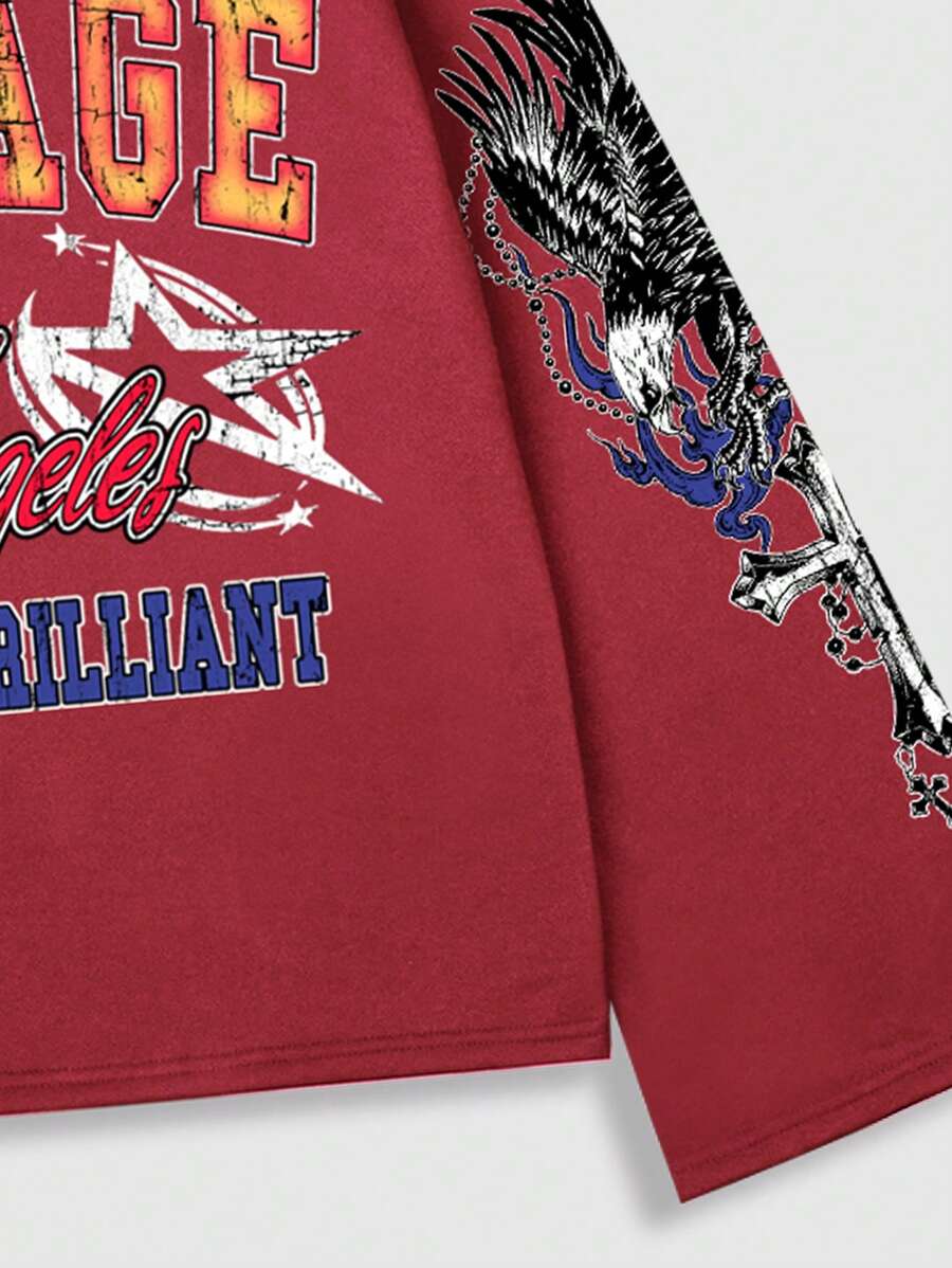 Street Life Men's Street Graphic Print Pullover Sweatshirt, Suitable For Everyday Casual Wear, Spring/Summer