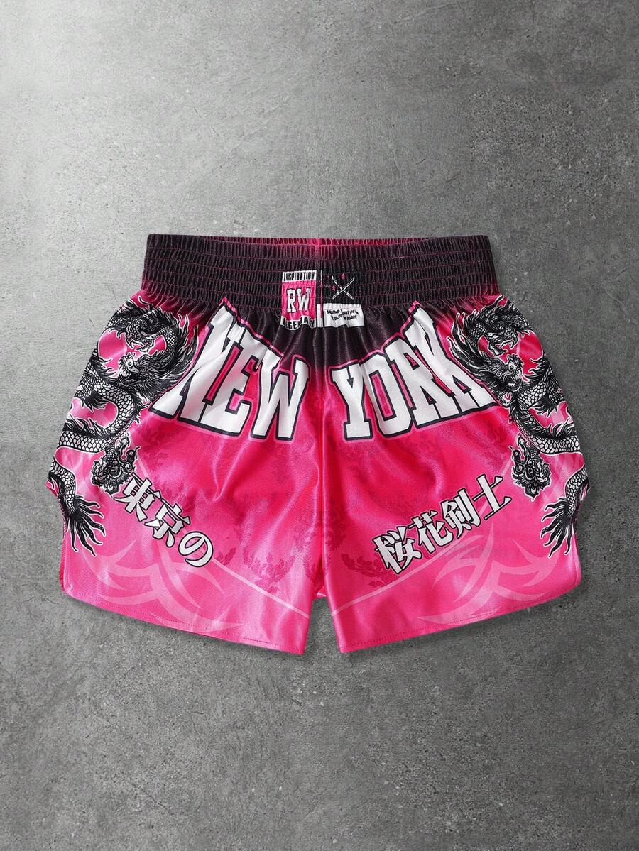 Street Life Men's Street Letter & Dragon Print Elastic Waist Boxing Shorts