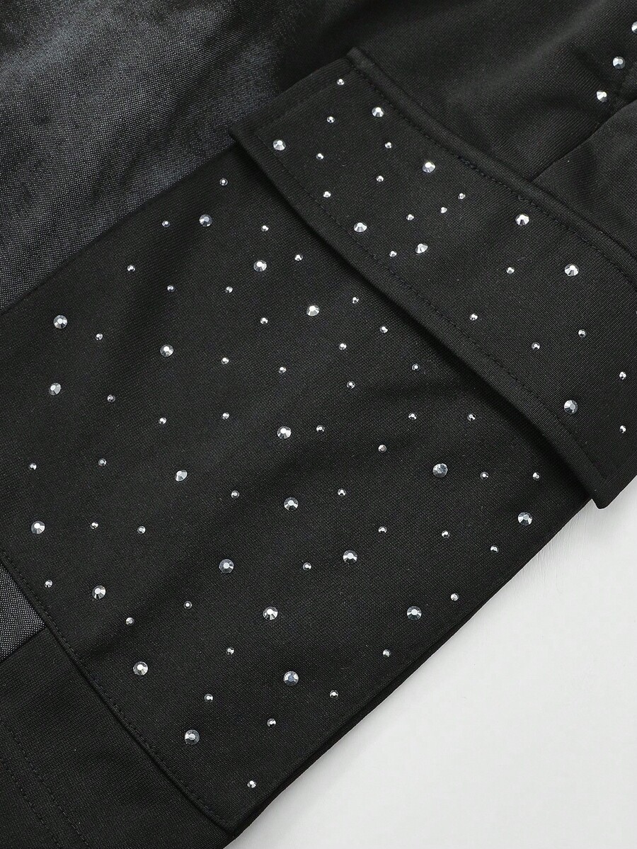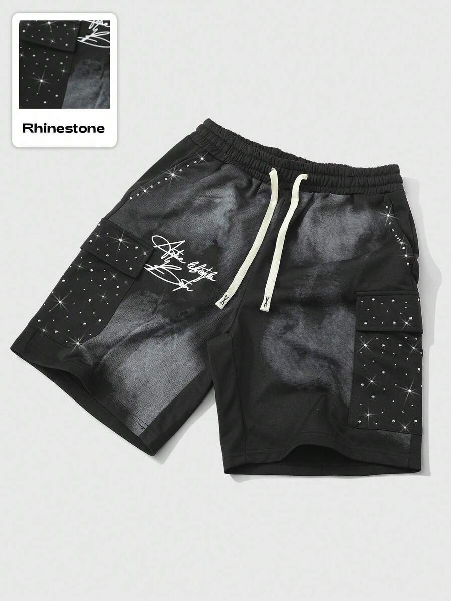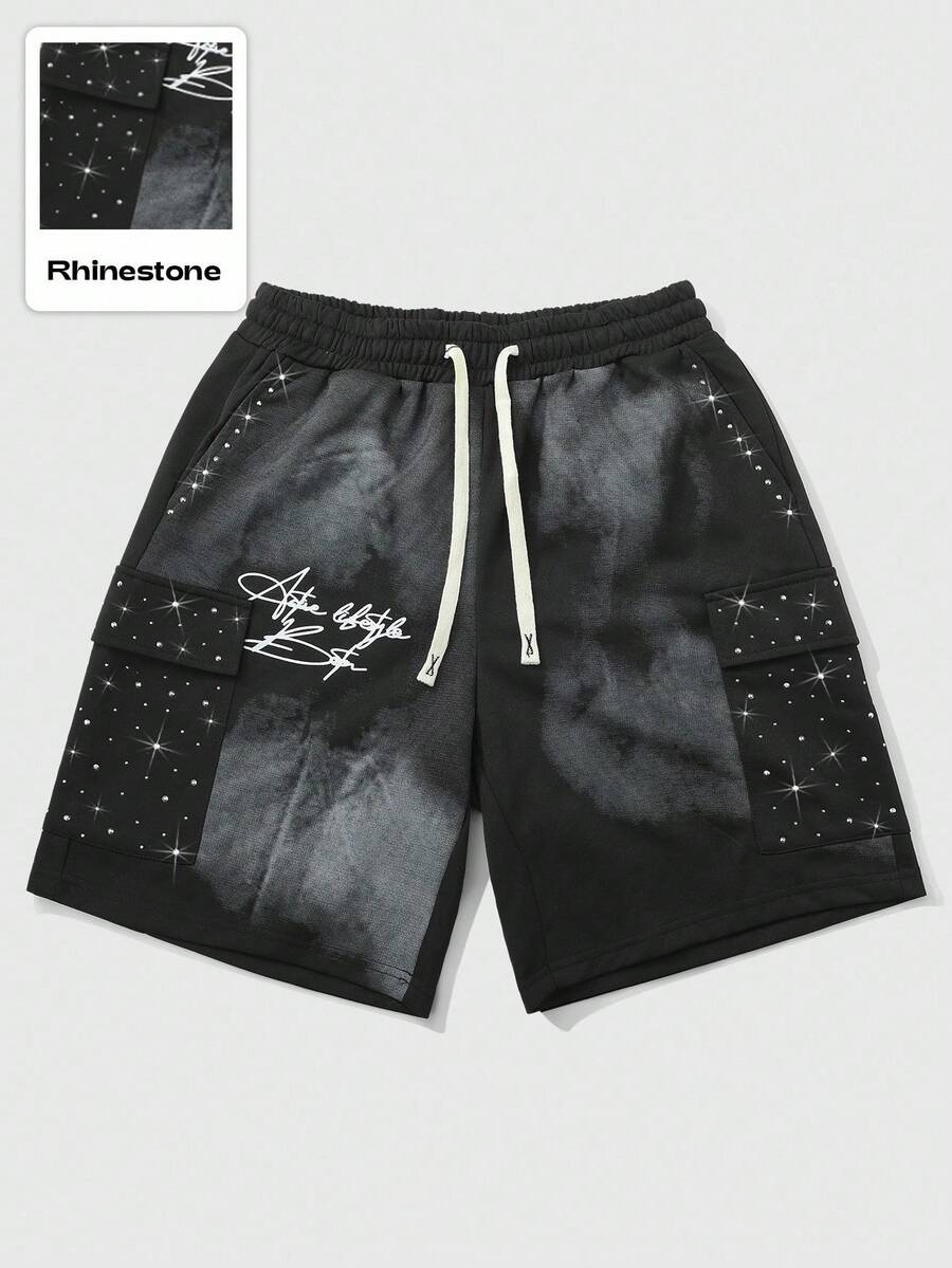 Street Life Men's Street Style American Rhinestone Printed Embellished Cargo Pocket Shorts