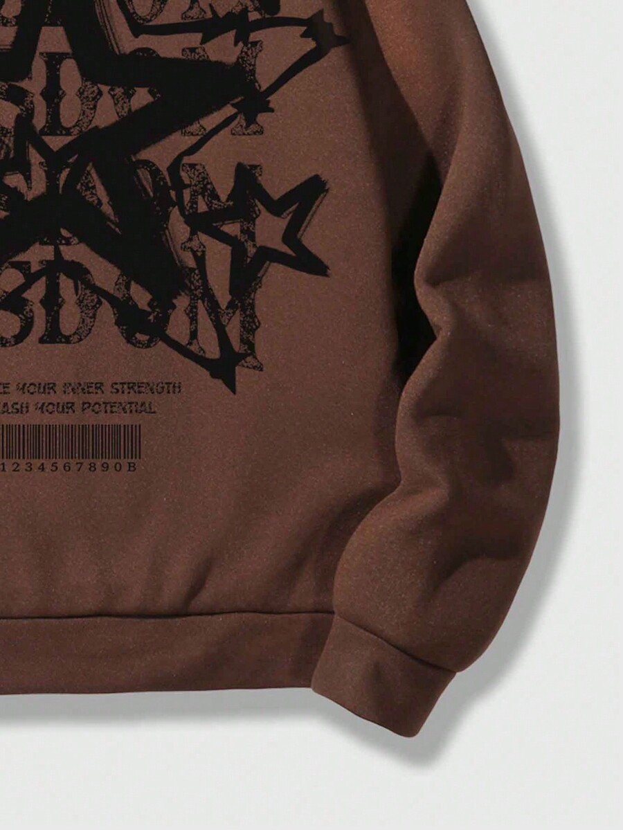 Street Life Men's Street Style Five-Pointed Star Hoodie With Thermal Lined , Suitable For Everyday Wear In Spring, Autumn & Winter
