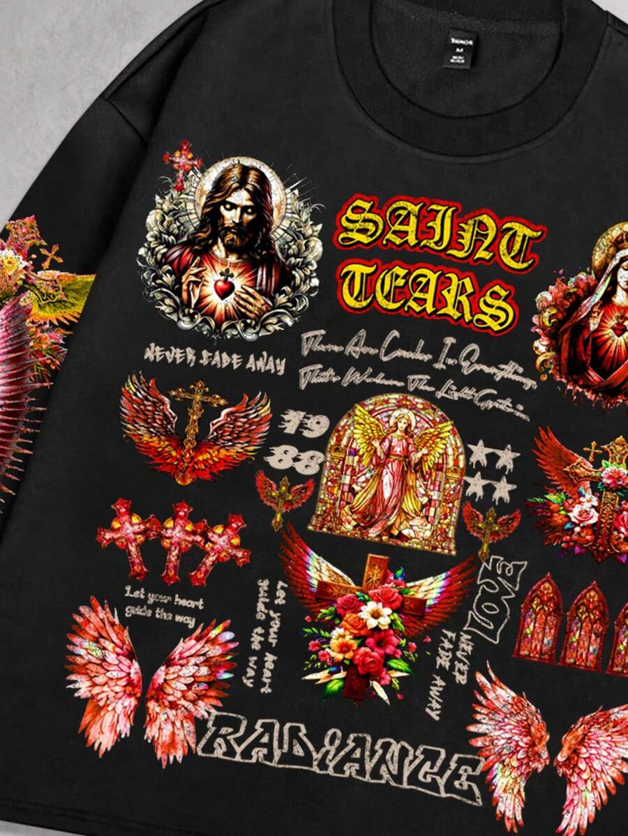 Street Life Men's Streetwear Graphic Gothic Print Pullover Hoodie, Suitable For Spring/Summer, Fall
