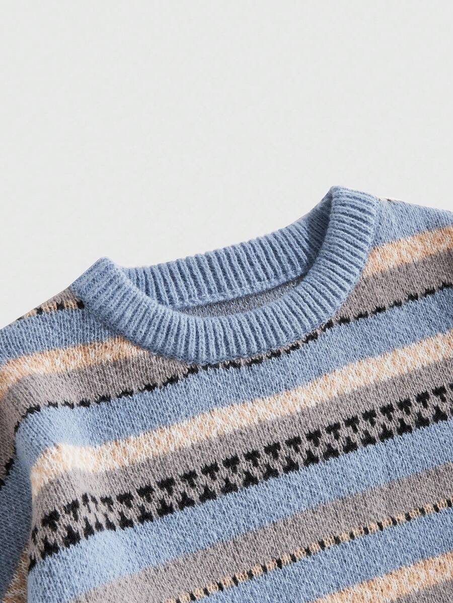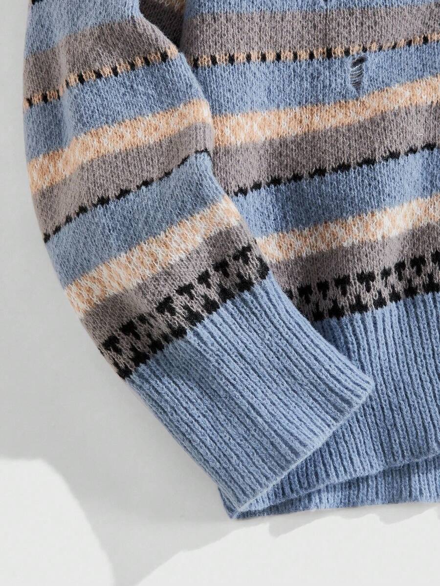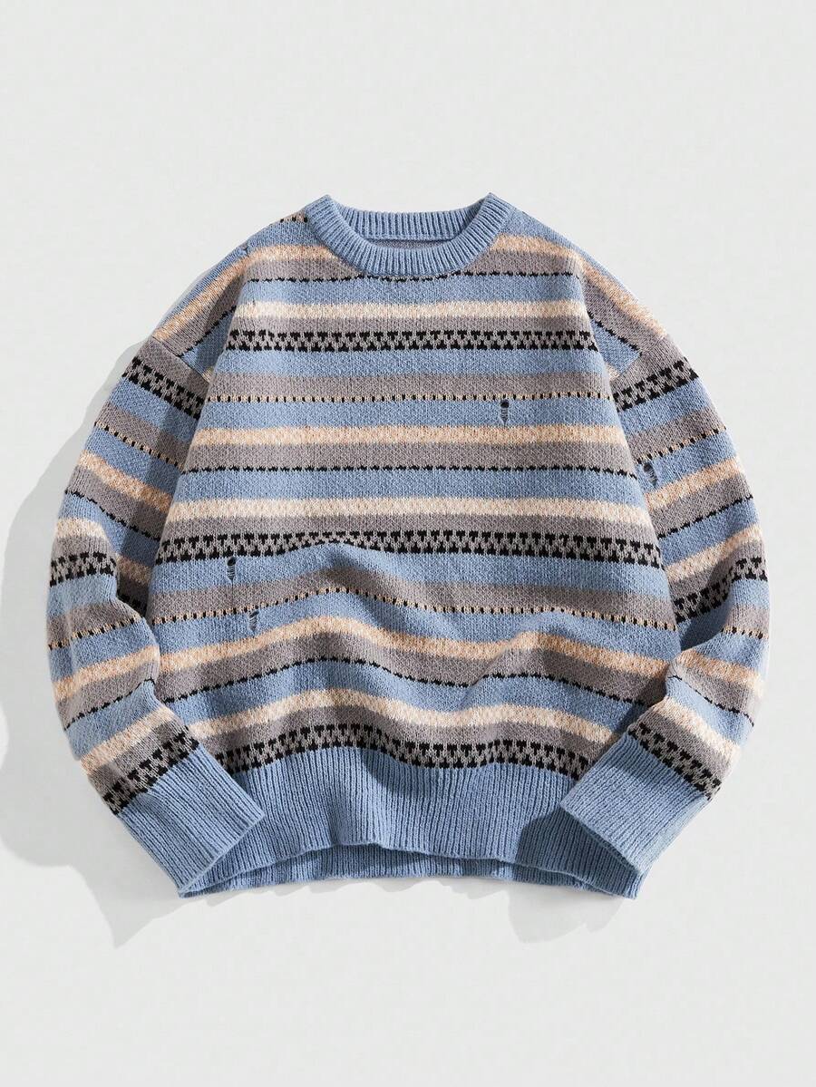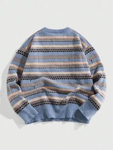 Street Life Men's Striped Dropped Shoulder Loose Knit Sweater, Fall Winter