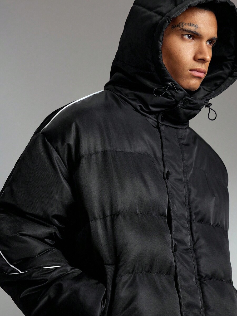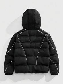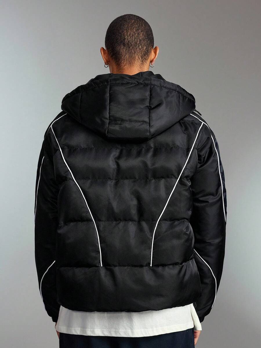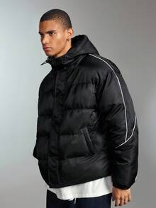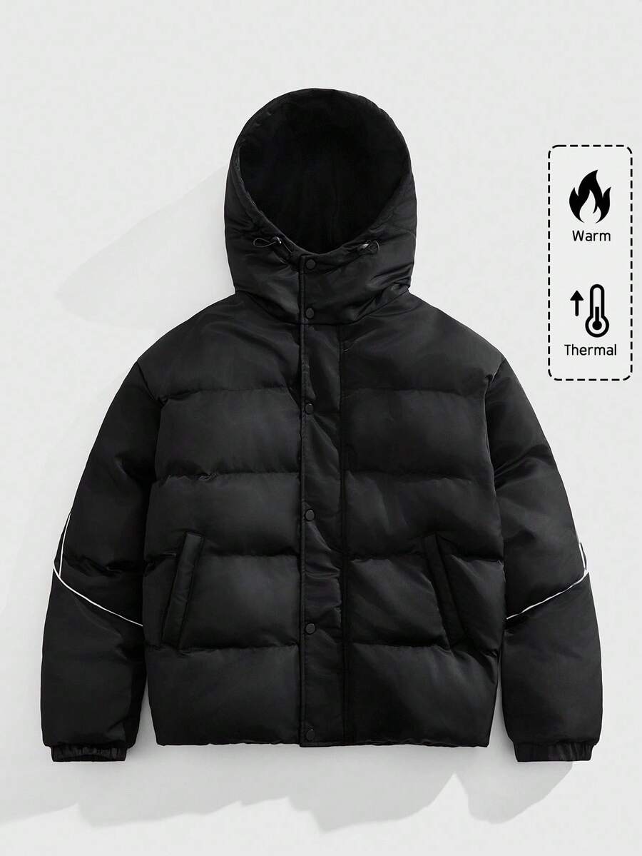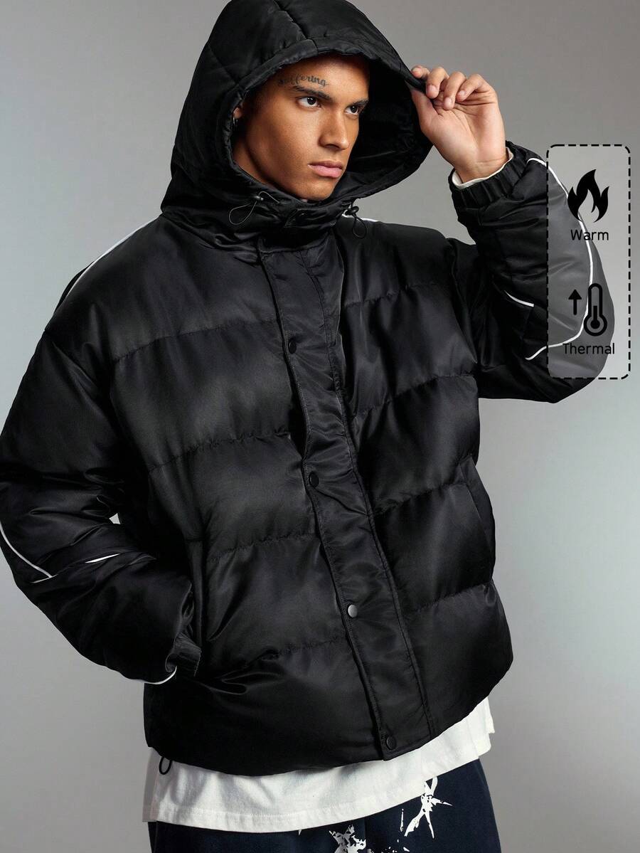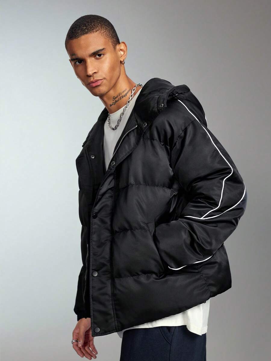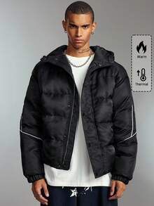 Street Life Men's Striped Hooded Casual Versatile Warm Padded Coat, Black, Winter