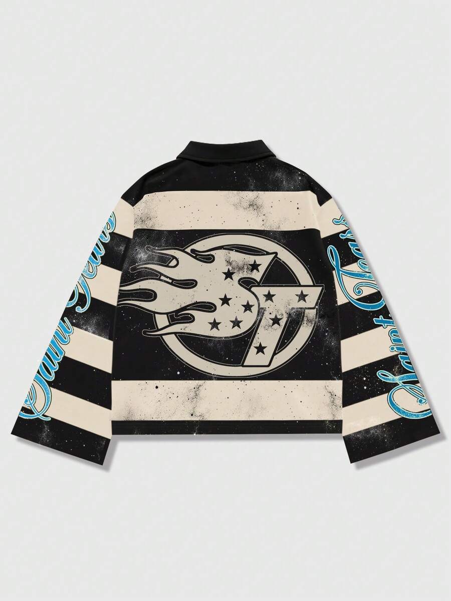 Street Life Men's Striped Polo Collar Long Sleeve T-Shirt, Casual Collared Tee