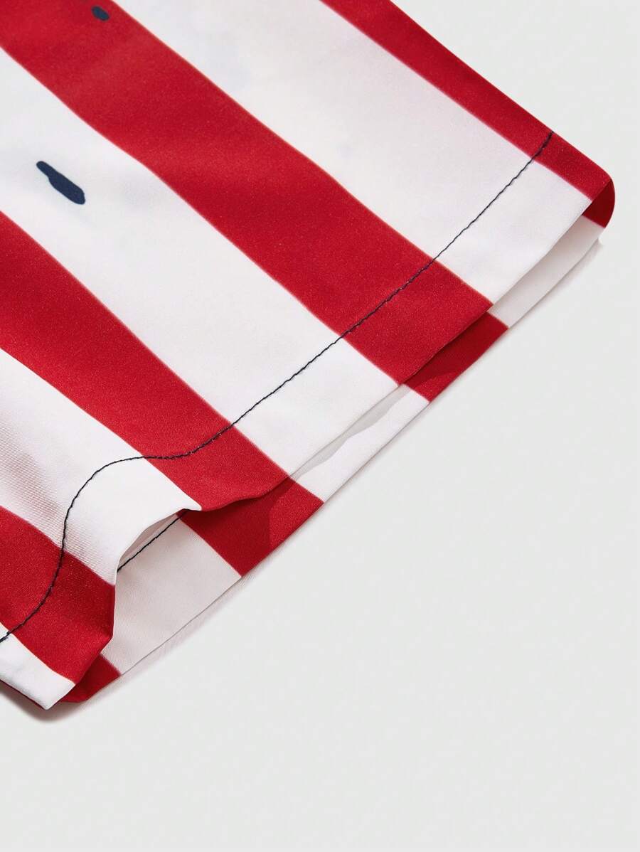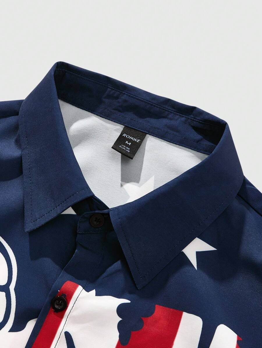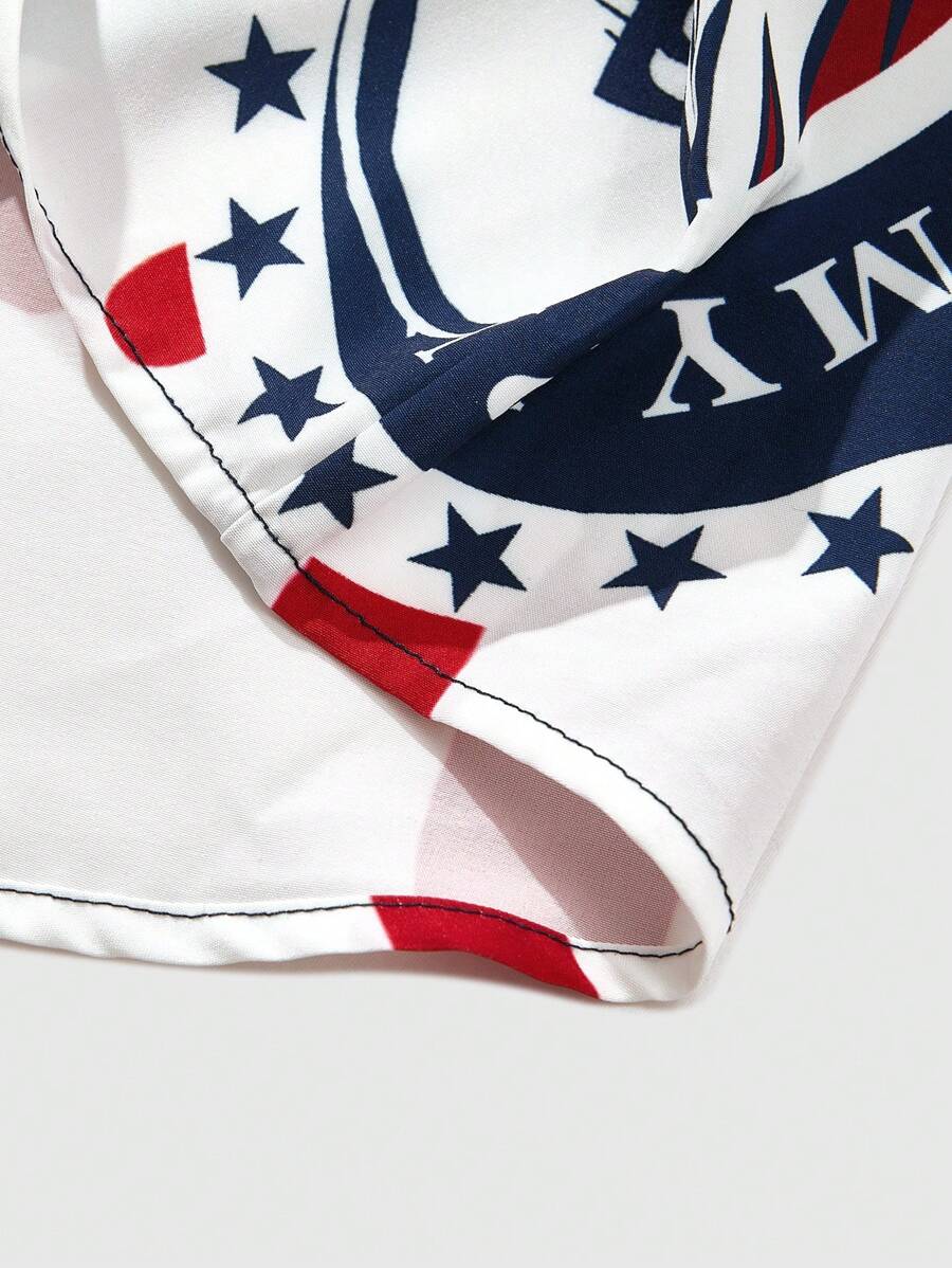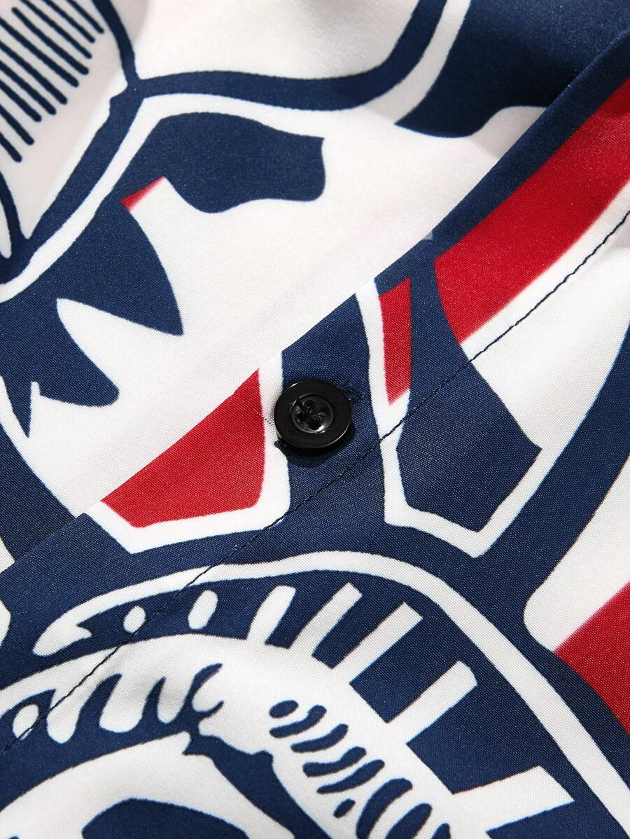 Street Life Men's Summer Casual Contrast Stripe & Statue Of Liberty Flag Print Shirt