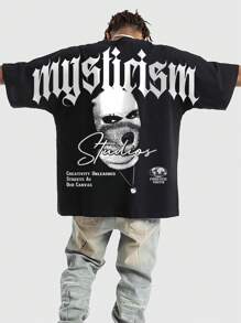 Street Life Men's Summer Casual Short Sleeve T-Shirt With Slogan Face Mask And Character Print, School, 2000s Style